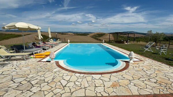 [English translation courtesy of Easy Reserve] We had a wonderful, peaceful stay at Villa Barbara. It's a lovely, spacious villa with a beautiful pool and stunning views stretching for miles across Tuscany. There are cozy seating areas and comfortable lounge areas in various spots. The kitchen is a bit dark, but that's why it's nice and cool.