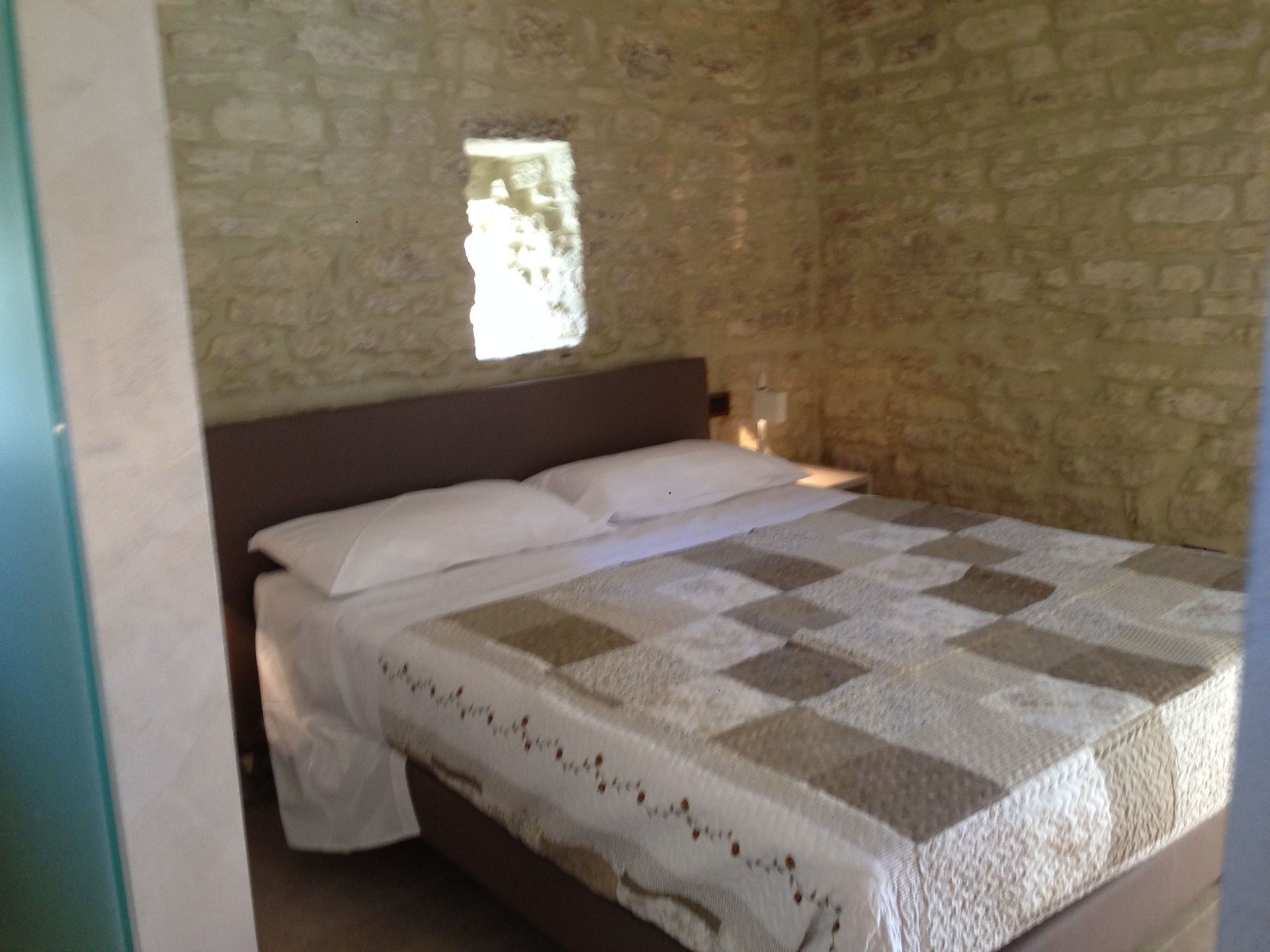 Schlafzimmer mit Bad 2 (25 m2): Doppelbett (Breite: 1.6m, Länge: 2m), Einzelbett (Breite: 1.6m, Länge: 2m), WiFi Internet, Klimaanlage, Fliegengitter, Satelliten-TV, Schreibtisch, Doppelwaschbecken, WC, Bidet, Dusche, Fön, Ausgang auf die Terrasse.