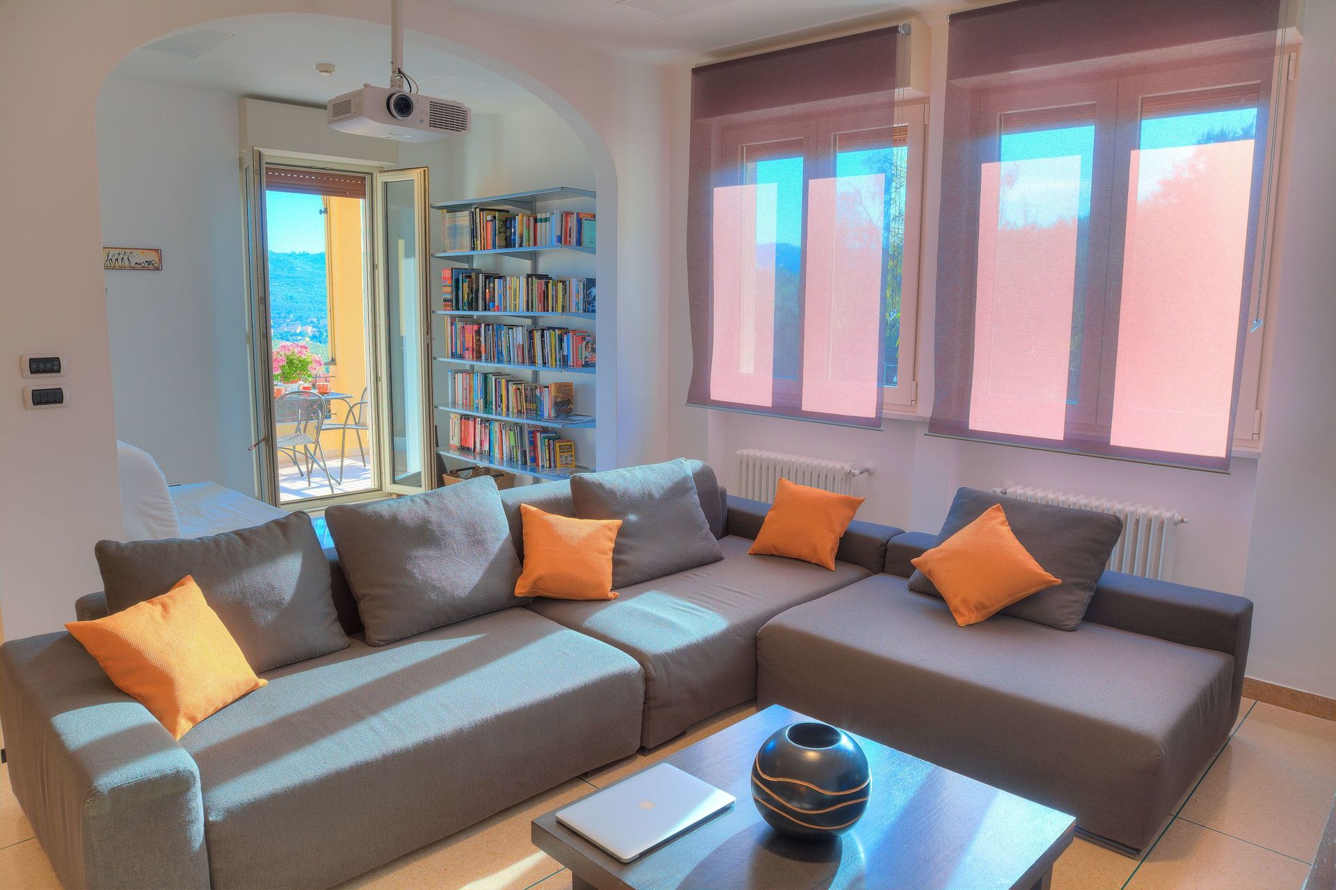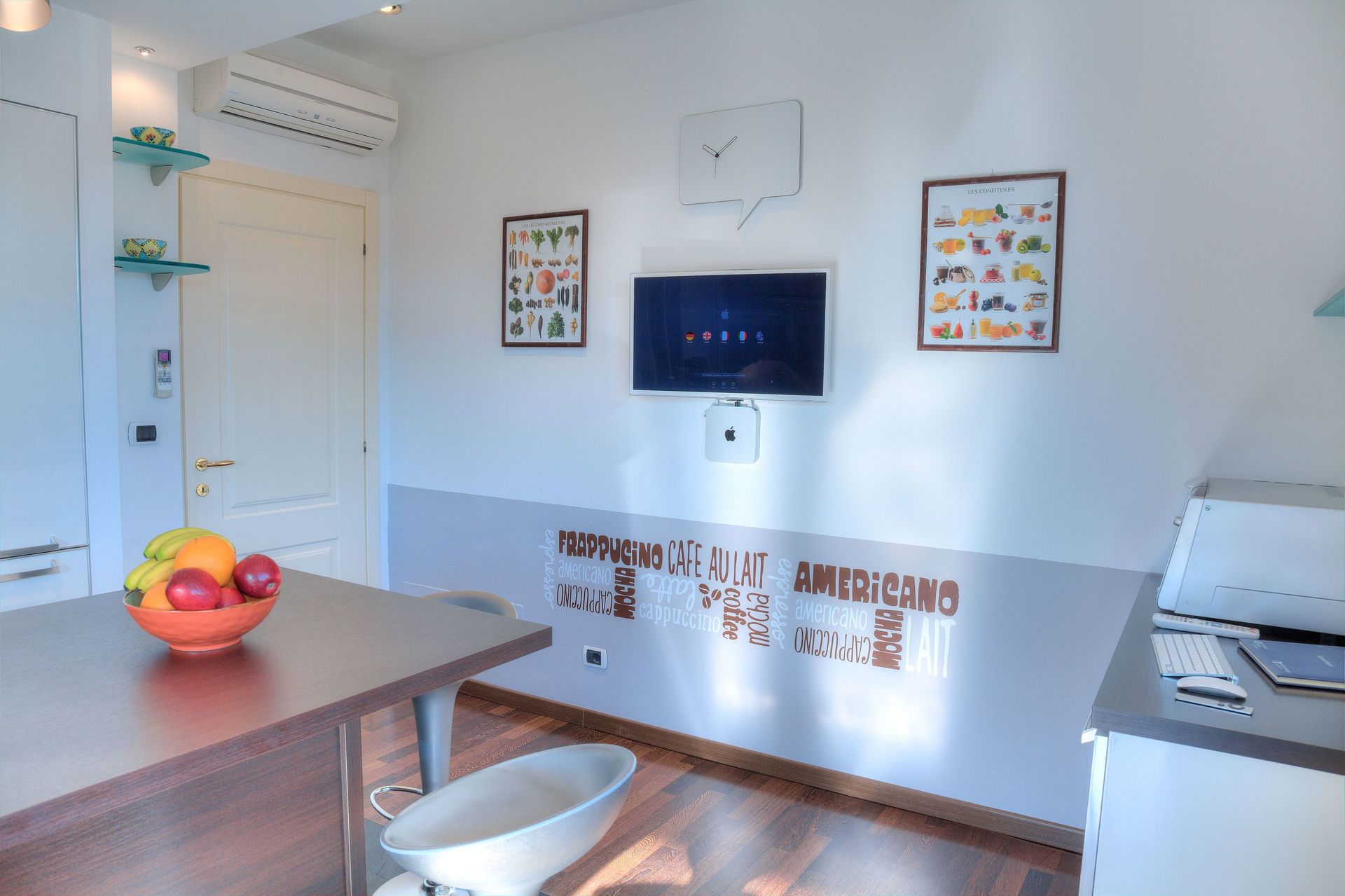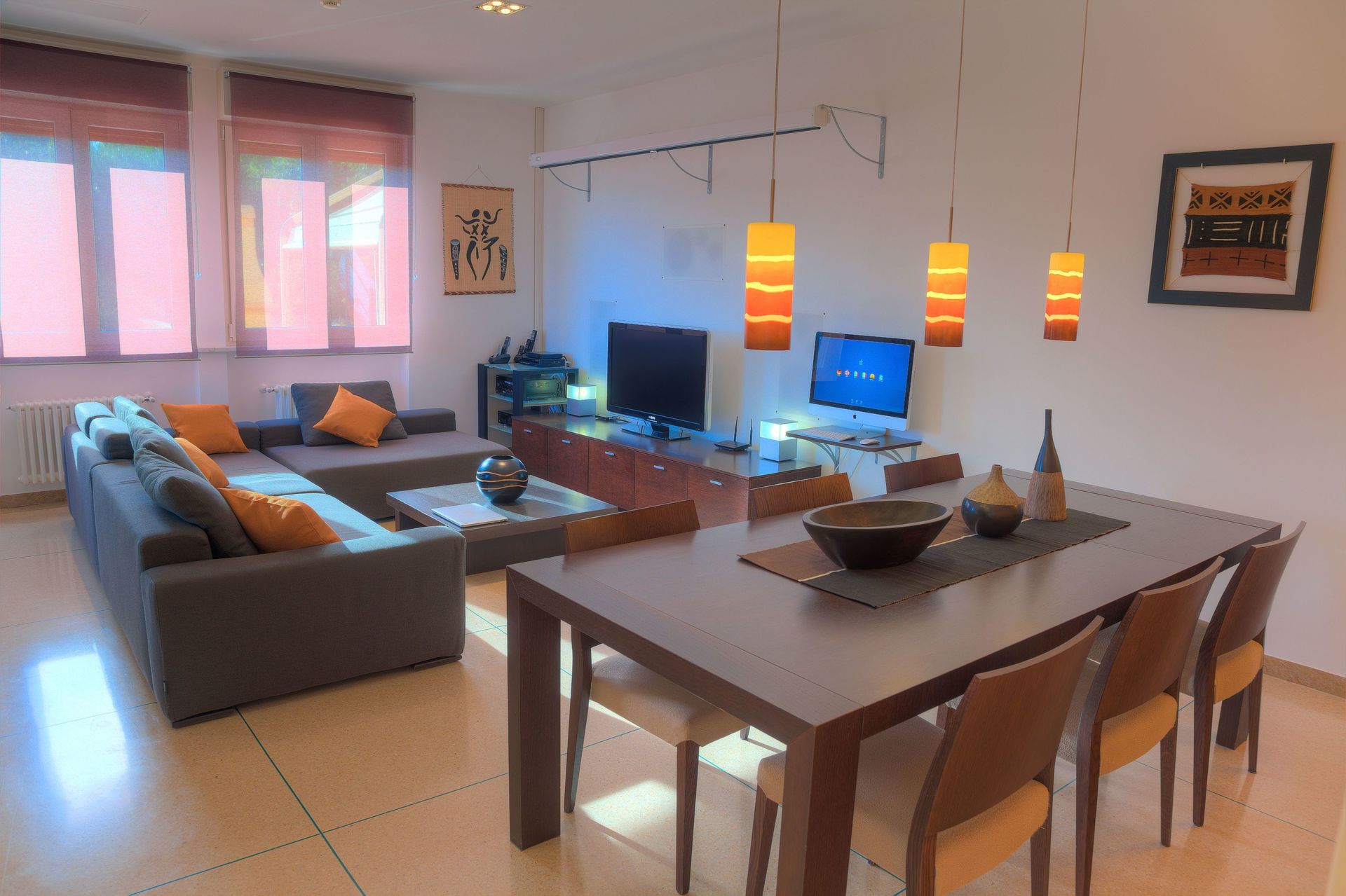 Musik in jedem Zimmer. Heimkinoanlage. Zwei Apple Mac-Computer. Kostenloses WLAN. Satellitenfernsehen.