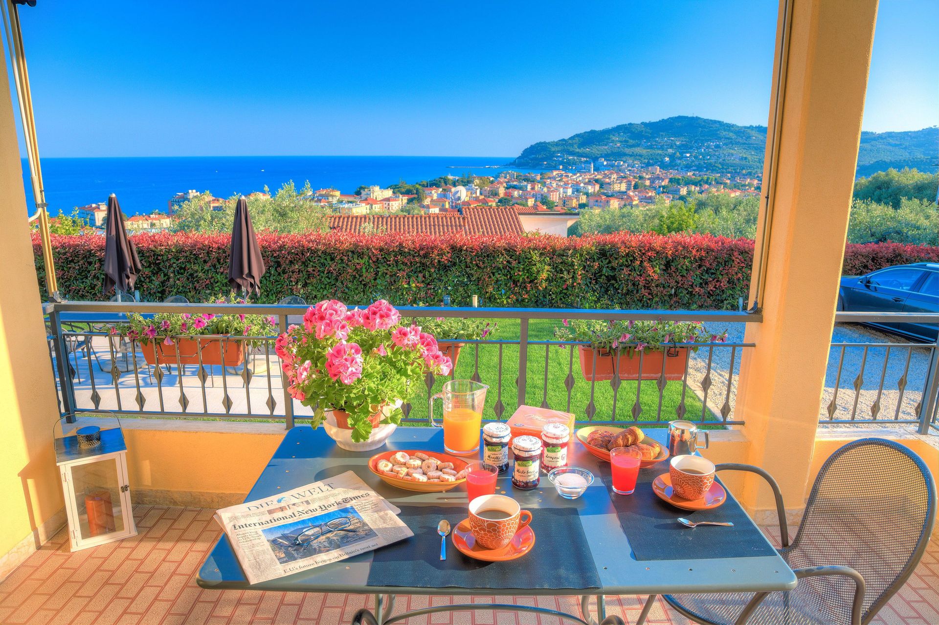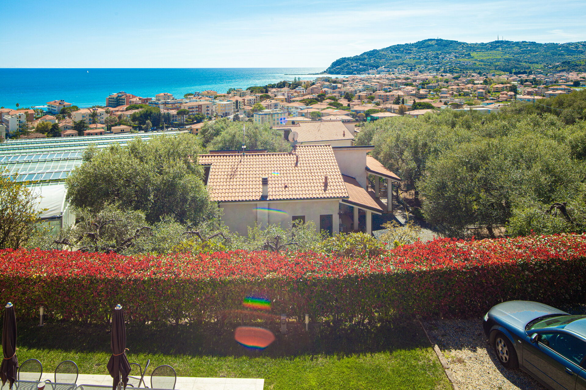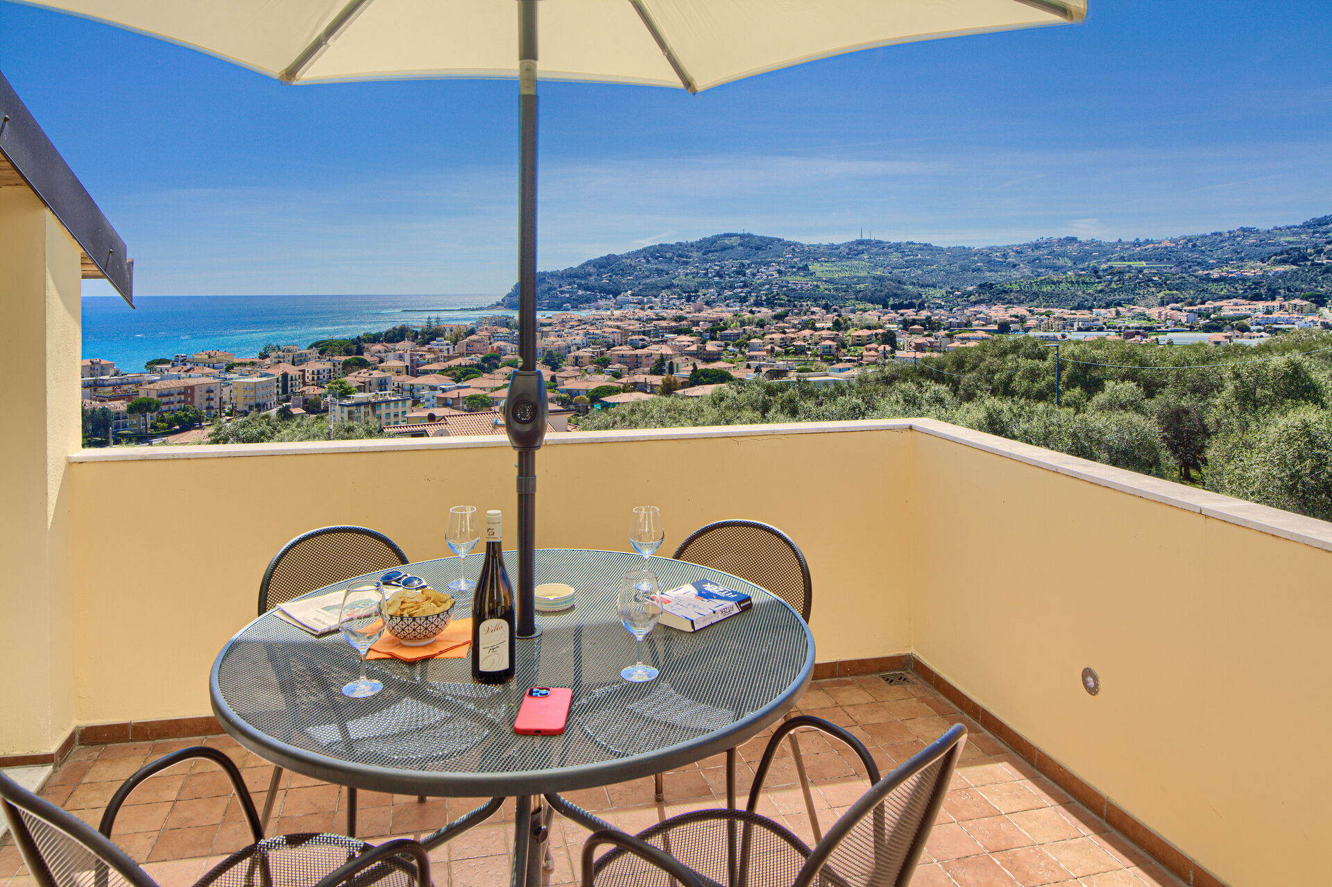 Die Villa liegt leicht erhöht in der Gegend „Monade“, einem der bekanntesten Viertel von Diano Marina, und bietet einen atemberaubenden Meerblick über den Golf. Dennoch ist der Strand in unmittelbarer Nähe (der nächste Strand ist 1 km entfernt).