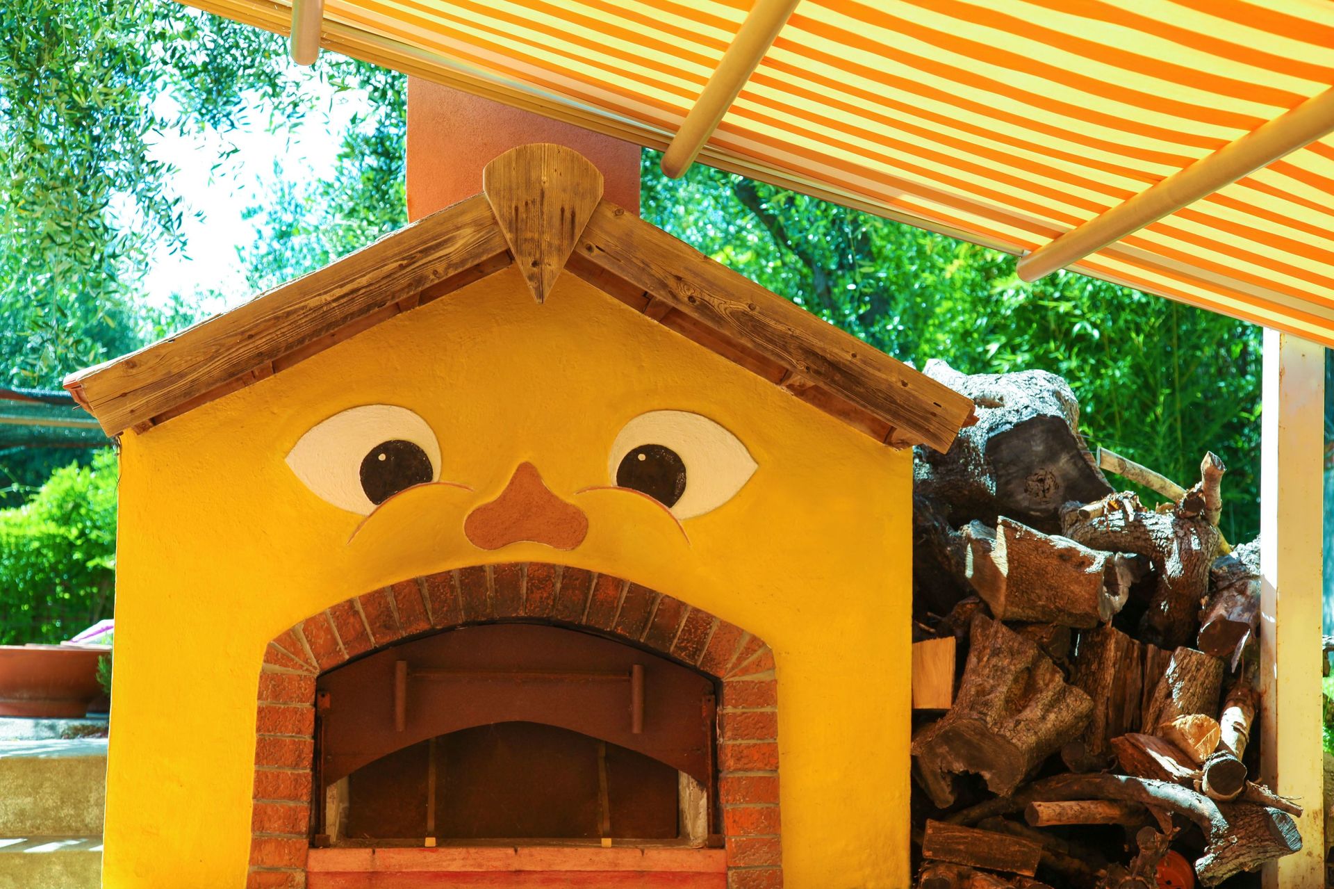 • Große Tische vor der Villa (auf dem Rasen) und auf der Rückseite der Villa (beim Holzofen und Grill).