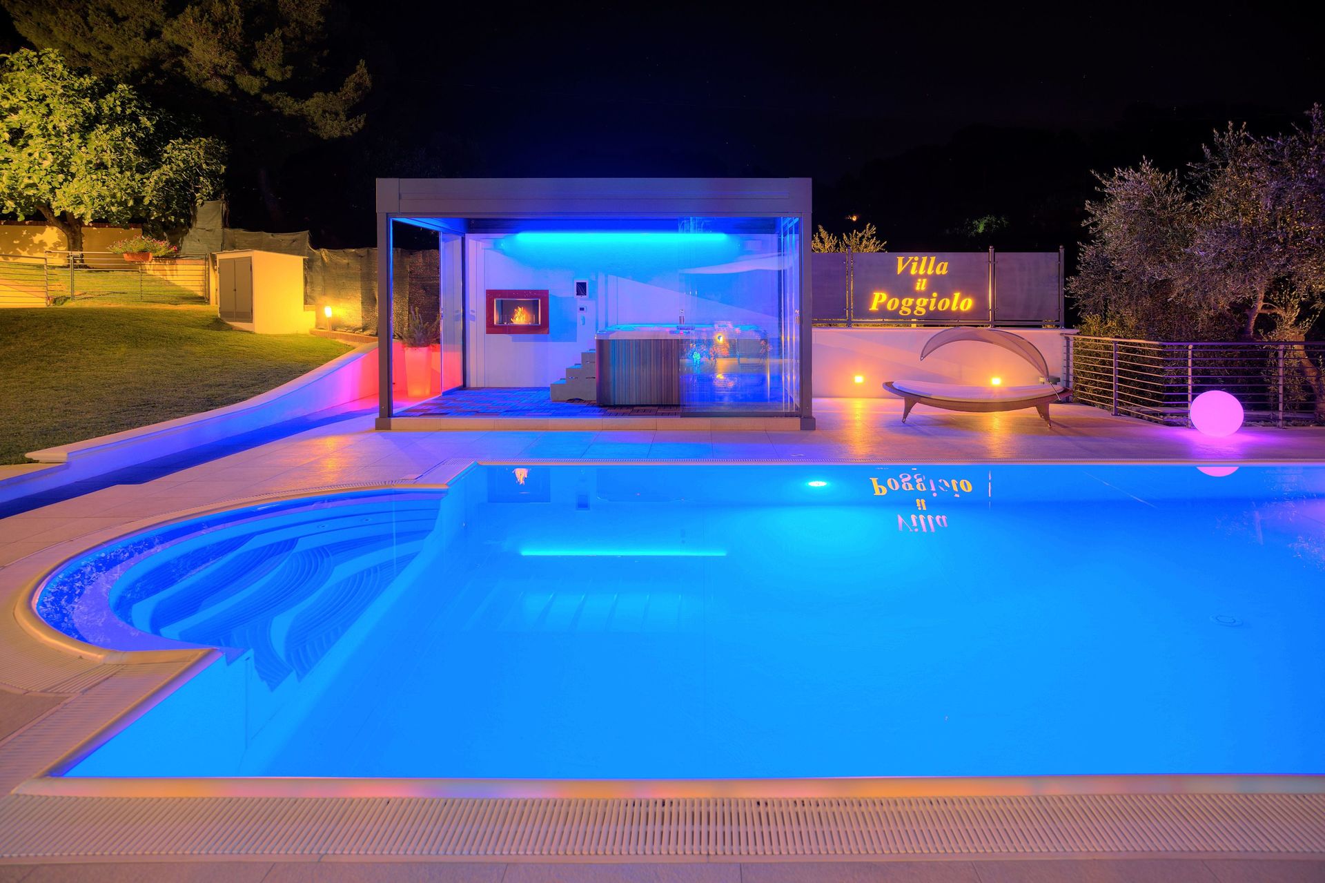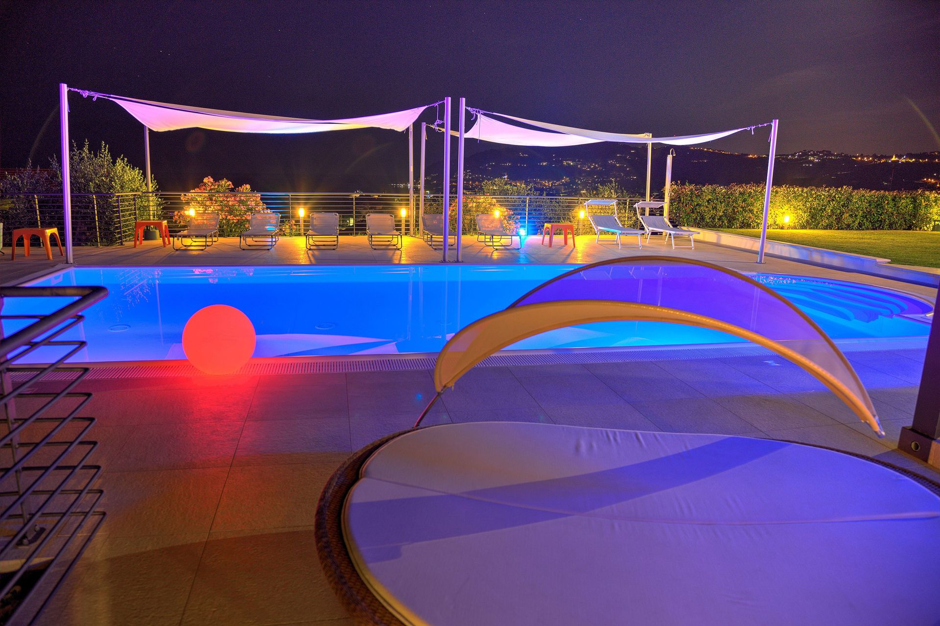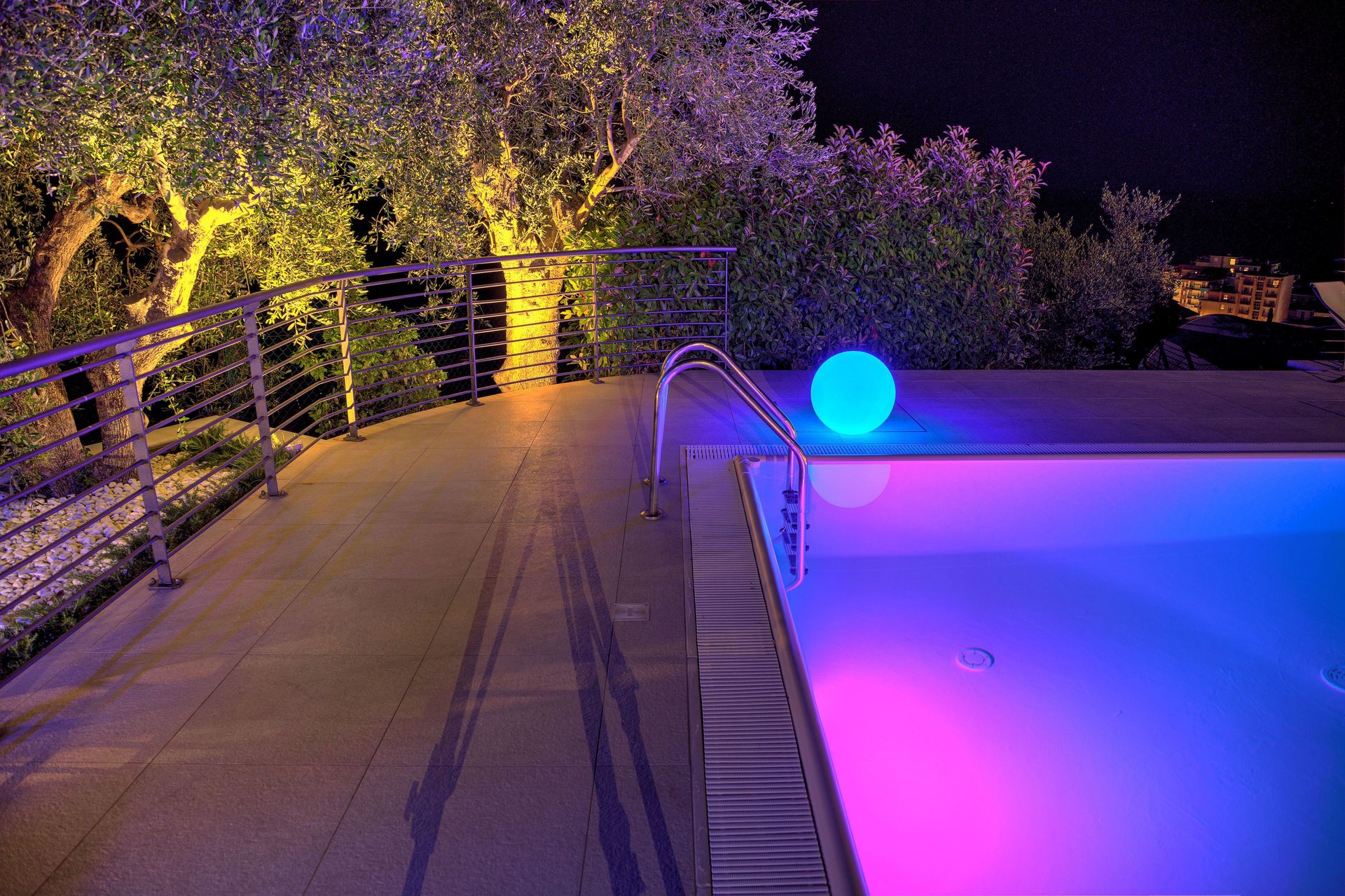 • atemberaubende nächtliche Farblichtshow am Pool,