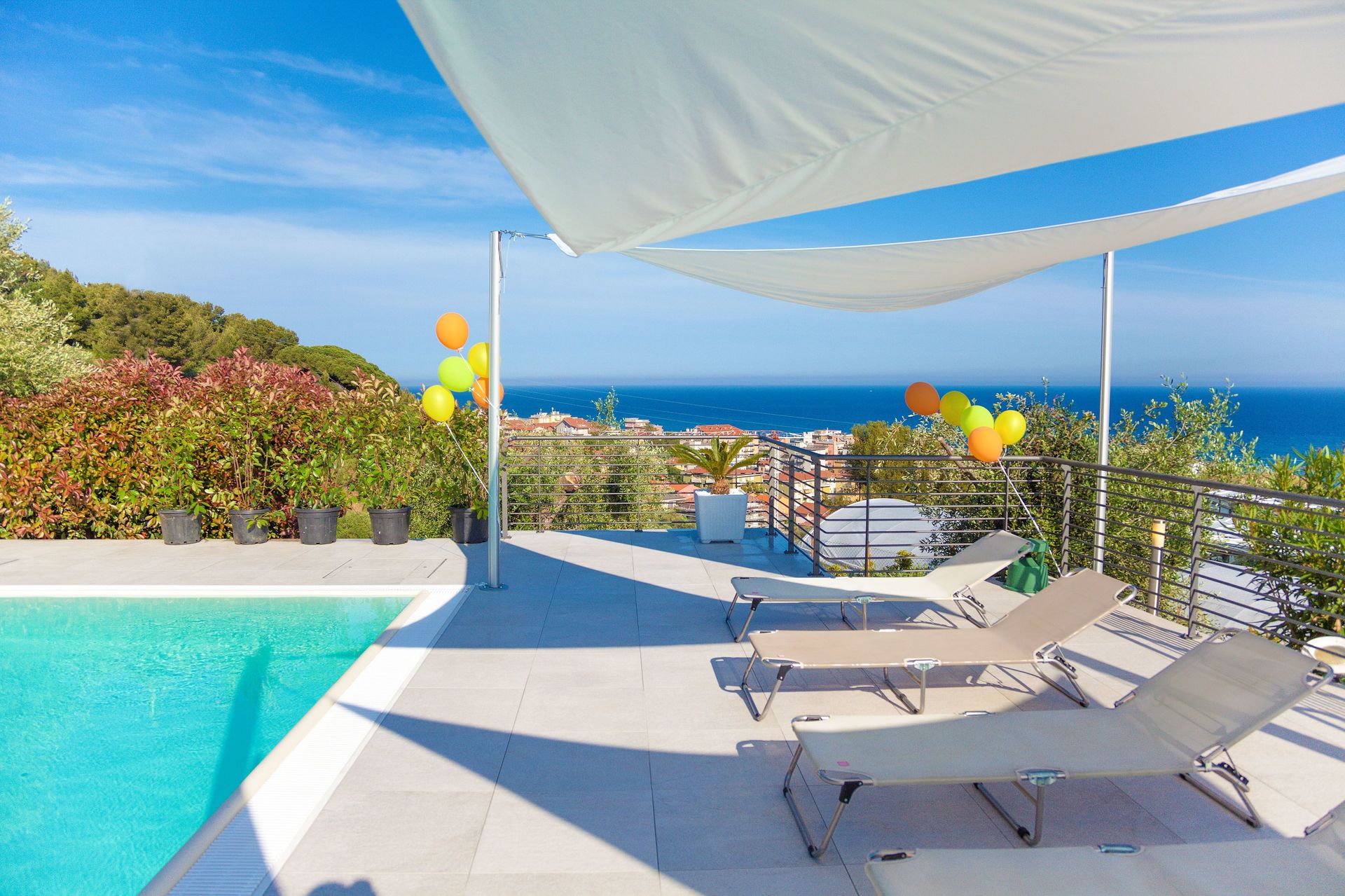 Die Villa bietet einen Swimmingpool, einen großen Whirlpool für 6 Personen, einen Garten und einen atemberaubenden Blick auf das Ligurische Meer.