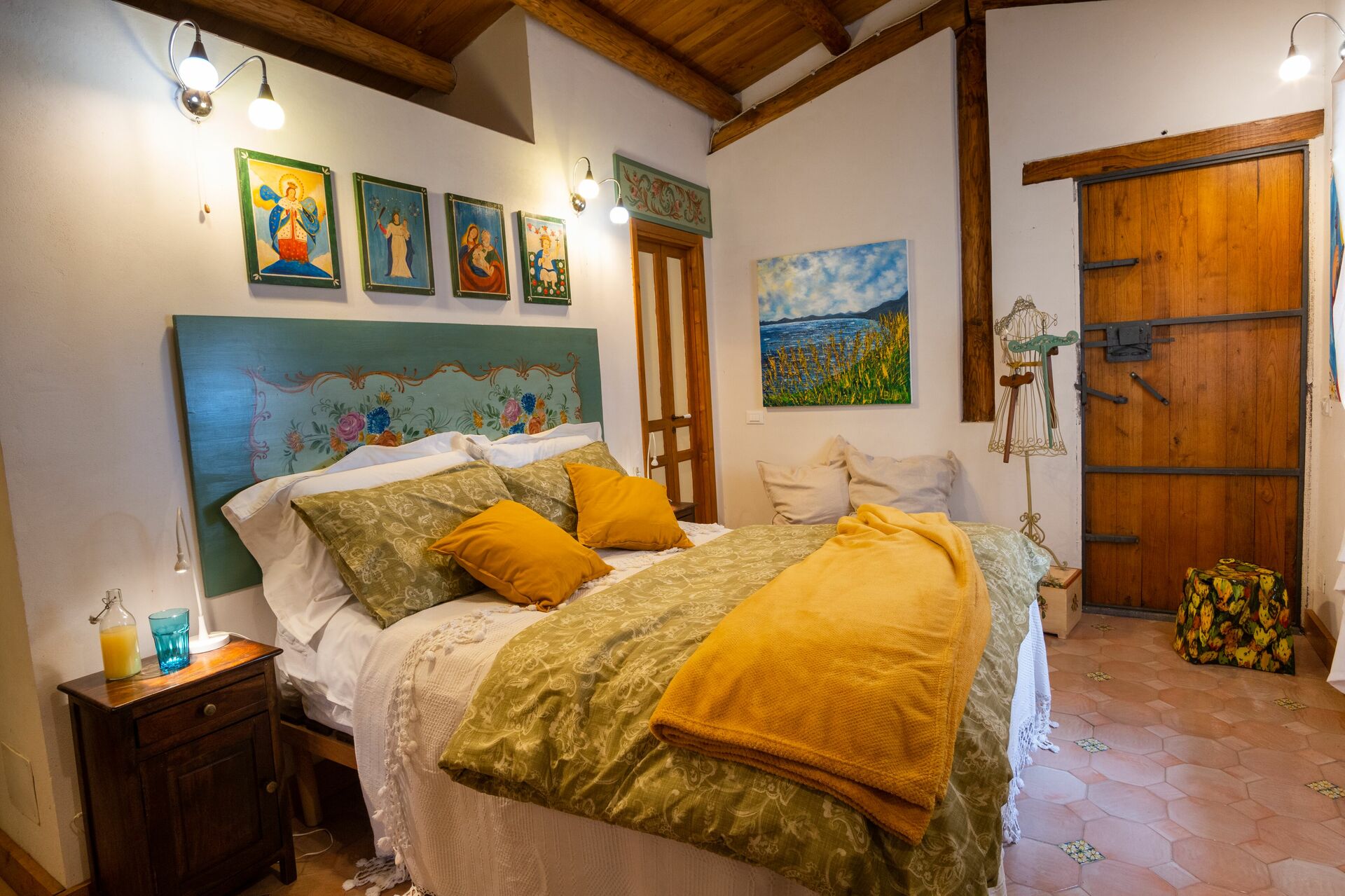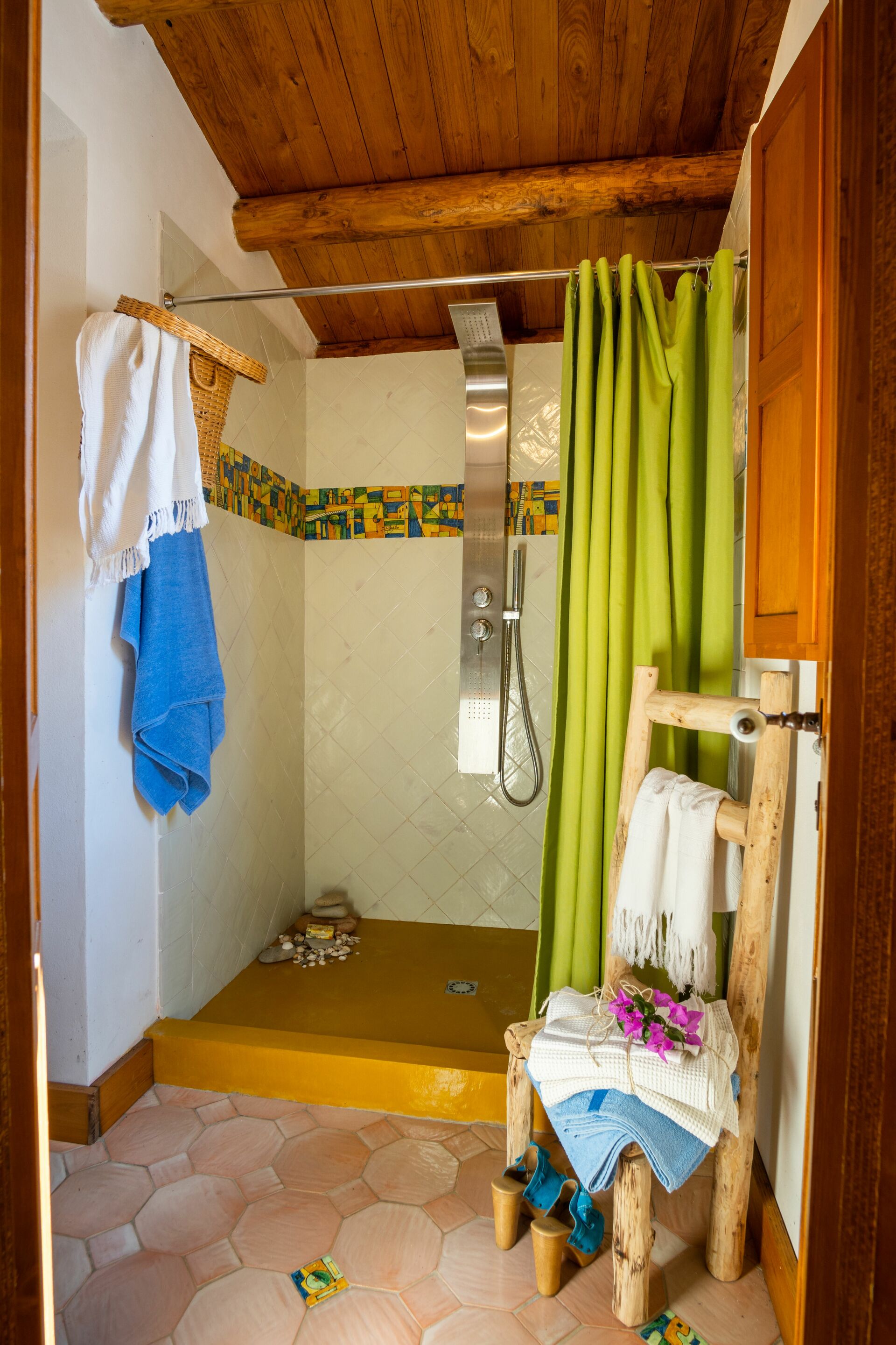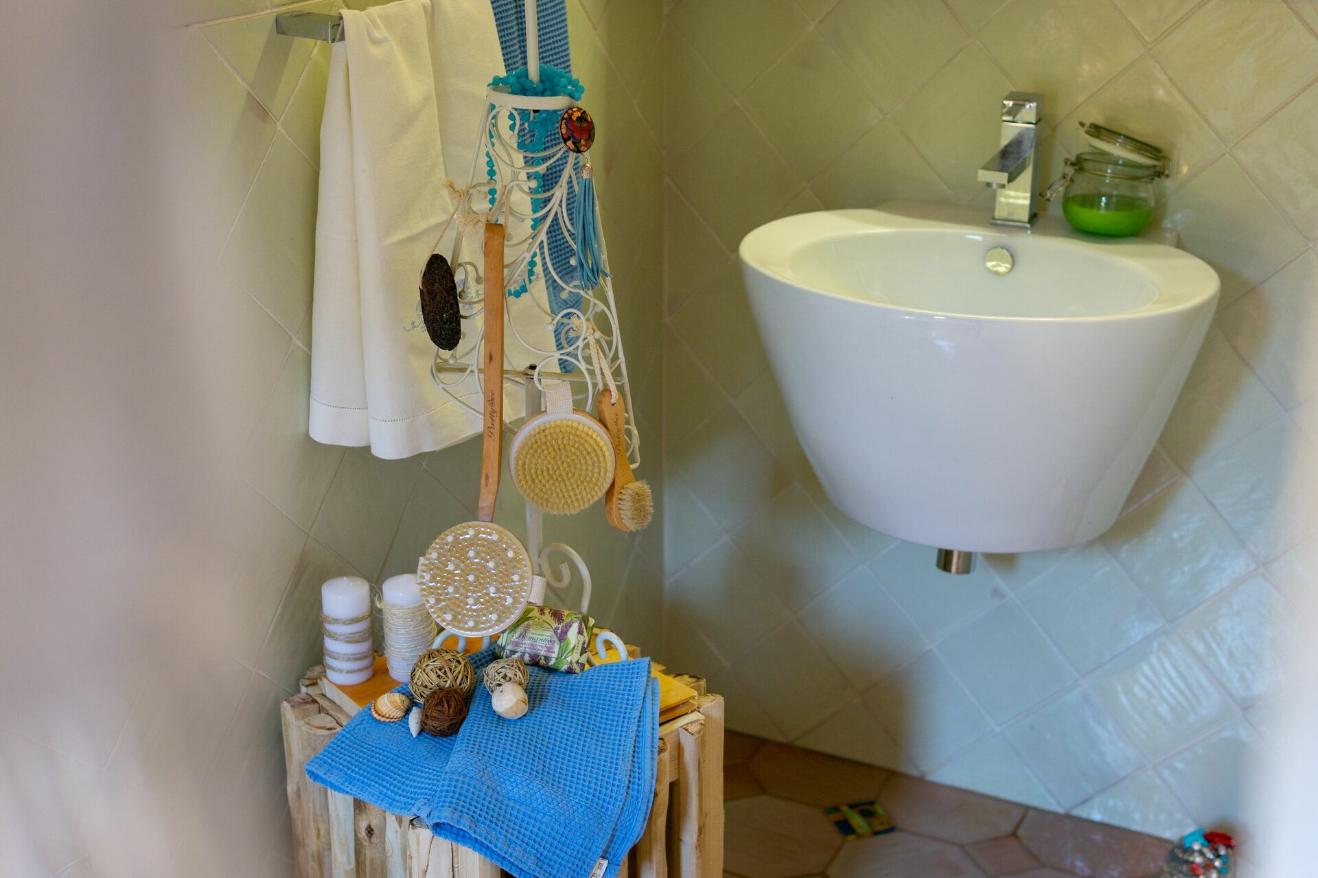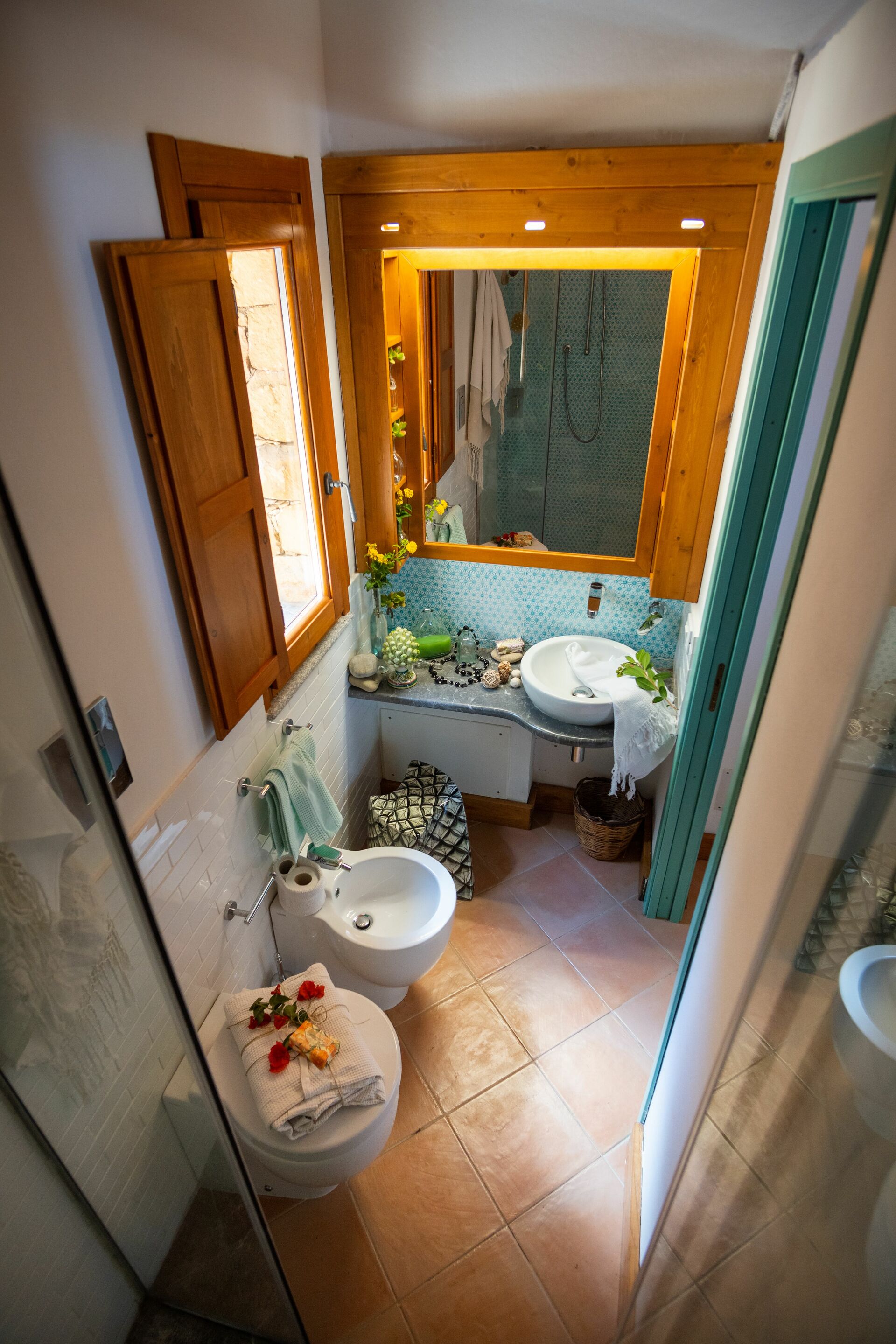 Schlafzimmer mit Bad 1 (35 m2): Doppelbett, WiFi Internet, TV, Deckenventilator, Waschbecken, WC, Bidet, Dusche.