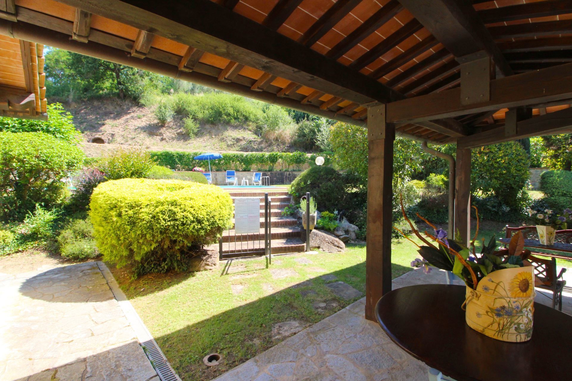 Villa Le Balze überblickt auf der einen Seite eine hölzerne Veranda, ausgestattet mit Tisch und Stühlen und perfekt für Ihre Abendessen und Abende in Gesellschaft, und den üppigen Garten, wo Sie einen Grill und eine Tischtennisplatte haben werden. Auf der anderen Seite blickt das Haus auf den Swimmingpool (Größe 6x12 m, Tiefe 1,40 m - geöffnet vom 10. Mai bis 15. September), der komplett eingezäunt ist und ausschließlich den Gästen zur Verfügung steht.