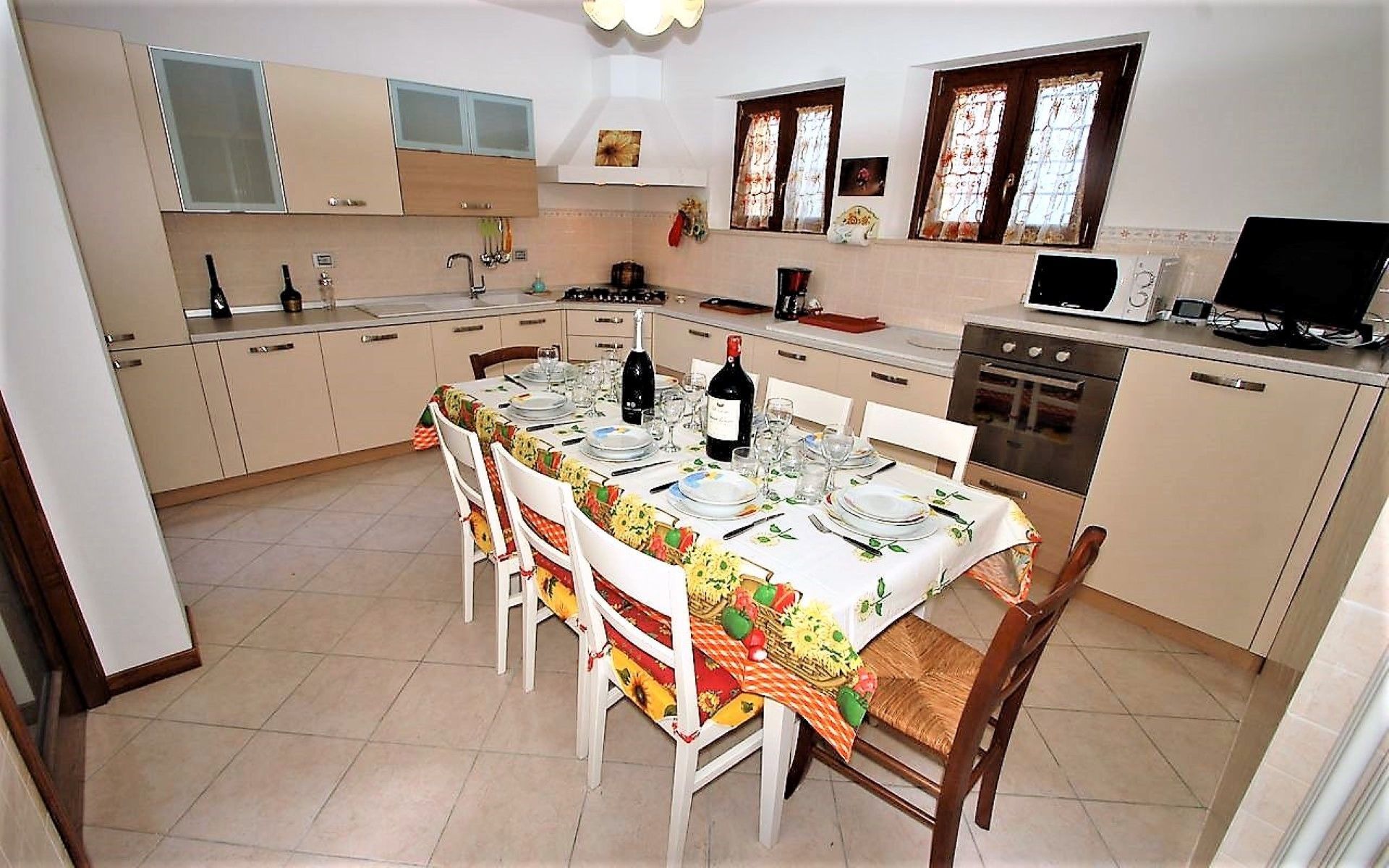 Küche (16 m2): gut ausgestattete Küche, Esstisch (Personen: 8), Spülmaschine, Kühlschrank, Tiefkühler, Mikrowelle, Herd, Ofen, Toaster, Italienische Kaffeemaschine, Amerikanische Kaffeemaschine, WiFi Internet, Fliegengitter, TV, Ausgang auf den Garten, Ausgang auf die Terrasse.