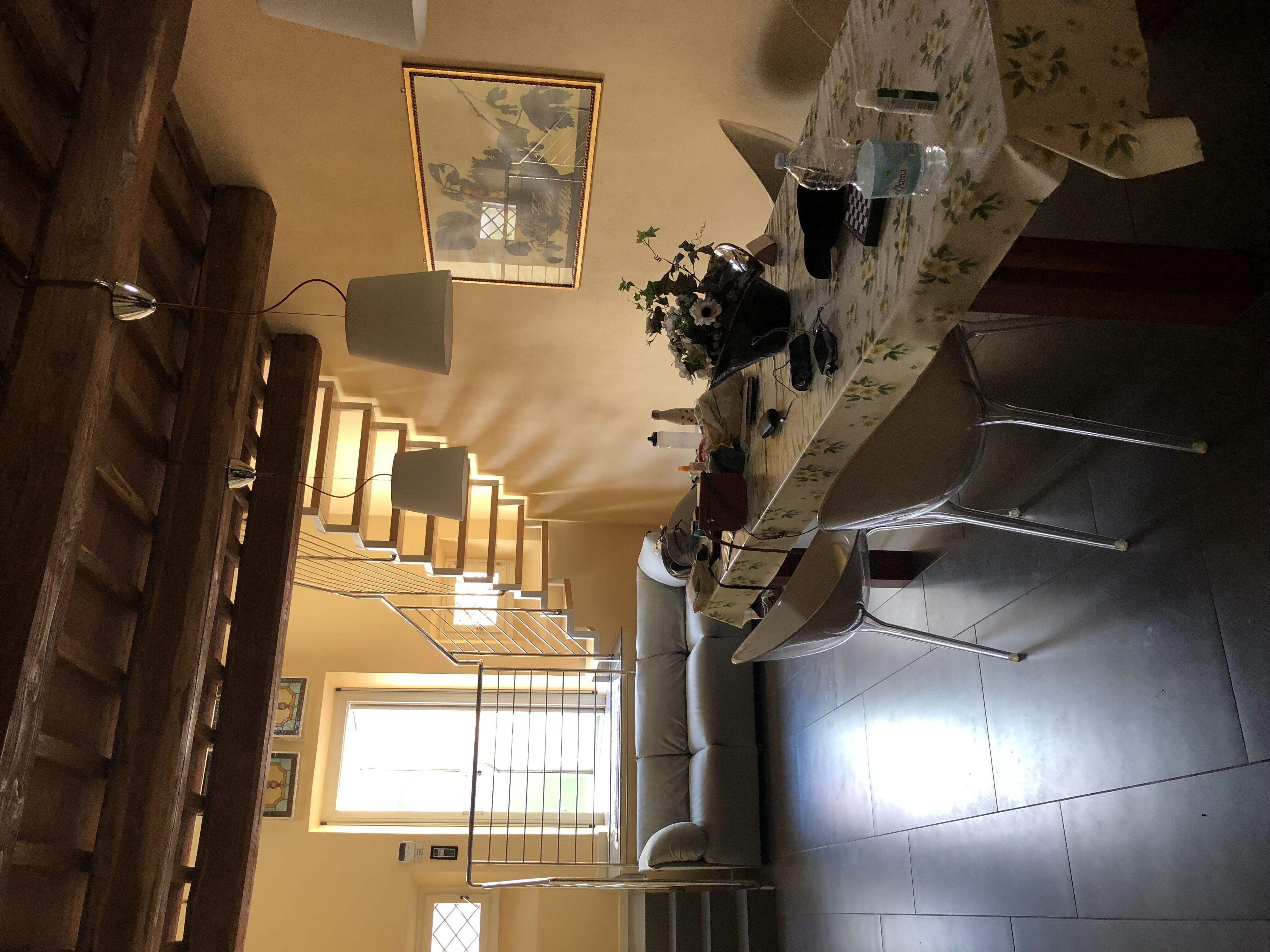 Eingang im Erdgeschoss: grosses Esszimmer mit Glastisch, grosse modere Küche mit Kochinsel in der Mitte, Herd mit 5 Flammen, Ofen, Mikrowelle, Geschirrspüler, Filterkaffeemaschine, Toaster, grosser Kühl-Gefrierschrank, 1 Badezimmer mit WC, Waschbecken, Bidet, Aussenbereich mit Waschbecken, Waschmaschine und Aufzug in den 1. Stock.