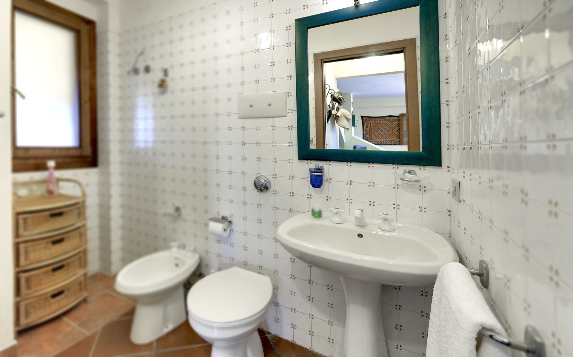 Badezimmer (4 m2): Waschbecken, WC, Bidet, Dusche, Bügeleisen, WiFi Internet.