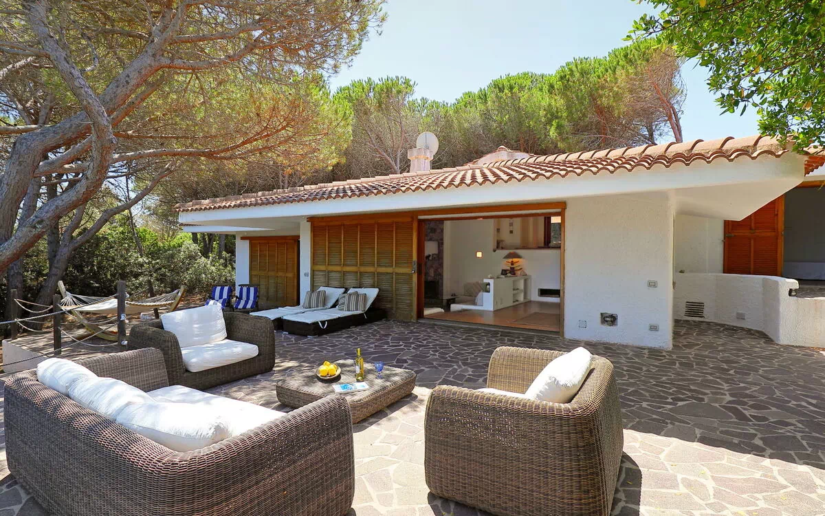 4-Zimmer-Haus 120 m2. Grosses Wohn-/Esszimmer, auf 2 Ebenen mit Sat-TV. Ausgang zur Terrasse. 1 Doppelzimmer mit Dusche/Bidet/WC. Ausgang zur Terrasse. 1 Zimmer mit 1 x 2 Etagenbetten. Ausgang zum Garten. 1 Zimmer mit 1 Bett und 1 franz. Bett. Ausgang zum Garten. Offene Küche (4 Kochplatten, Backofen, Geschirrspüler, Mikrowelle, Tiefkühler, elektrische Kaffeemaschine). Ausgang zur Terrasse. Dusche/Bidet/WC. Keine Heizmöglichkeit. Parkettboden. Grosse Terrasse teilweise überdacht. Terrassenmöbel, Gartengrill, Liegestühle (2). Zur Verfügung: Waschmaschine, Haartrockner. Internet (WLAN, gratis). Maximal 1 Haustier/Hund erlaubt. IT090062C2000Q2681