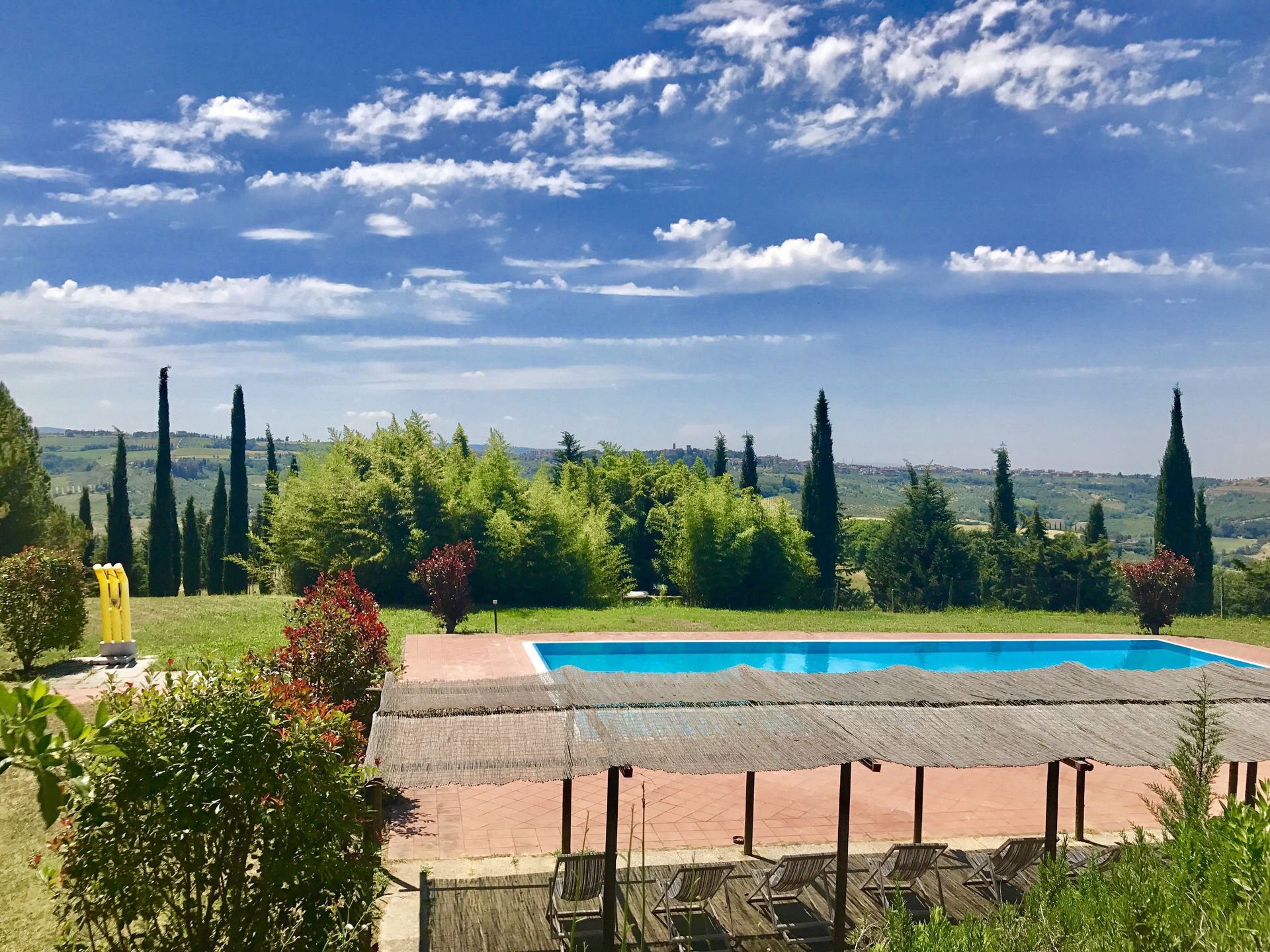San Gimignano, der vor dem zweiten Weltkrieg die Toskana verließ, um sein Glück in einer anderen Gegend in Norditalien zu finden, war in diesem beeindruckenden historischen Schloss zu Gast auf einer Hochzeitsfeier. Als Aldo von der Schlossterrasse aus die fantastischen Aussichten auf seine Heimatstadt San Gimignano, auf die Hügellandschaft der Chianti Fiorentino Region bis hin nach Monte Amiata und den Apuanischen Alpen bewunderte, verliebte er sich. Innerhalb weniger Monate konnte er das Castello di Monsanto als sein Eigentum bezeichnen.