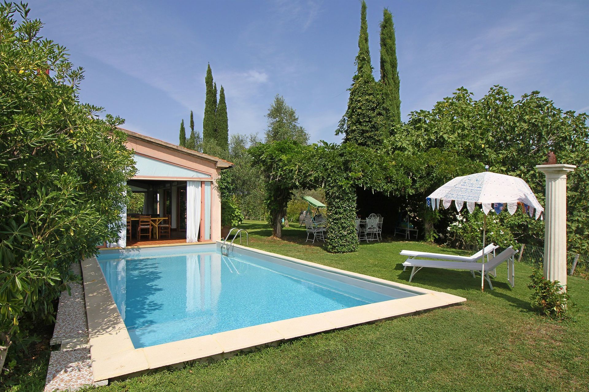 Garten: Schwimmbad (privat, Breite: 4m, Länge: 9m, Tiefe: 1.4m, Außen), Grill, Außenbereich für das Essen im Freien, Esstisch (Personen: 8), Pavillon, Gartenmöbel, Terrassenmöbel, sechs Sonnenliegen, eingezäunt, umzäuntes Grundstück, Kinderspielplatz.