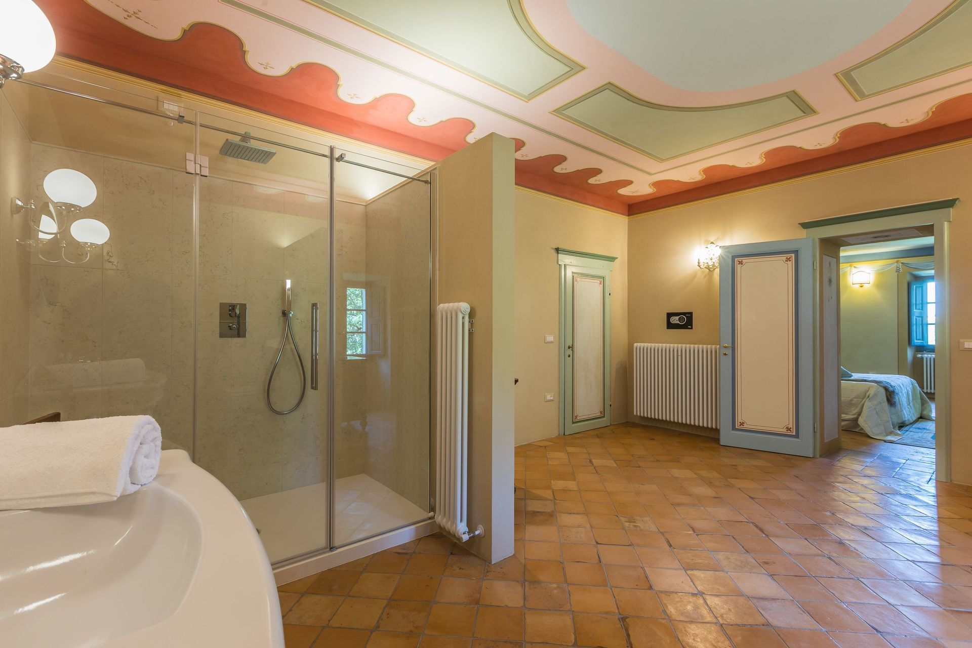Palazzo Rosadi liegt 5 km von Monterchi, Italien, entfernt und nur 29 km von Arezzo entfernt in der Touristengegend "Arezzo Und Umgebung". Palazzo Rosadi ist ein reizende Gebäude aus Stein (500 m2) mit Whirlpool, Klimaanlage und W-LAN Internet. In der Unterkunft können bis zu 12 Gäste bequem in sechs Schlafzimmern mit sieben Badezimmern schlafen.