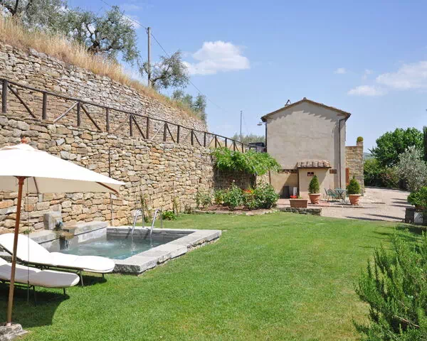 Schönes,freistehendes Bauernhaus aus Stein, in Panorama-Lage mit hübschem Blick auf das Chianatal und die antike Kirche S. Maria delle Grazie al Calcinaio gelegen. Der Besitz befindet sich nicht weit von der mittelalterlichen, ursprünglich etruskischen Stadt Cortona entfernt. Das Haus ist kürzlich renoviert worden, seine antiken Cottoböden behaltend, und ist mit antiken Möbeln eingerichtet worden.