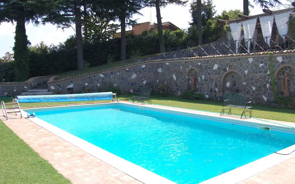 Zugang zum Pool und dem privaten Garten vom Balkon und über einen Fußweg über eine kleine Straße schöne, freistehende Villa "Vista da Rocca di Papa", 750 m.ü.M., auf 3 Stockwerken. Mietobjekt bestehend aus Haupt- und Nebengebäude, im Ort, 600 m vom Zentrum von Rocca Di Papa, ruhige, sonnige, erhöhte Lage im Villenviertel, 25 km vom Meer. Zur Alleinbenutzung: grosser Garten 4'000 m2 (eingezäunt) mit Rasen und Blumen, Teich, Schwimmbad (12 x 6 m, 110 - 220 cm tief, saisonale Verfügbarkeit: 01.Mai. - 15.Okt.) mit Meerwasser und Rollladenabdeckung. WC im Poolbereich, Poolhaus, Sitzplatz, Laube (10 m2), Terrasse, Gartenmöbel, Grill, Parkplatz (für 3 Autos) beim Haus. Lebensmittelgeschäft 600 m, Supermarkt 800 m, Restaurant 700 m, Bar 300 m, Bushaltestelle 100 m. Nahe gelegene Sehenswürdigkeiten: Roma 30 km, Castel Gandolfo 8 km, Frascati 10 km, Anzio 40 km, Lido di Ostia 40 km, Rainbow magic Land 30 km. Bekannte Seen in der Umgebung sind gut erreichbar: Lago di Albano 8 km, Lago di Nemi 11 km. Bitte beachten: Fahrzeug empfohlen. Jugendgruppen nur auf Anfrage. Der Besitzer akzeptiert keine Jugendgruppen. Der Besitzer wohnt auf dem gleichen Grundstück.