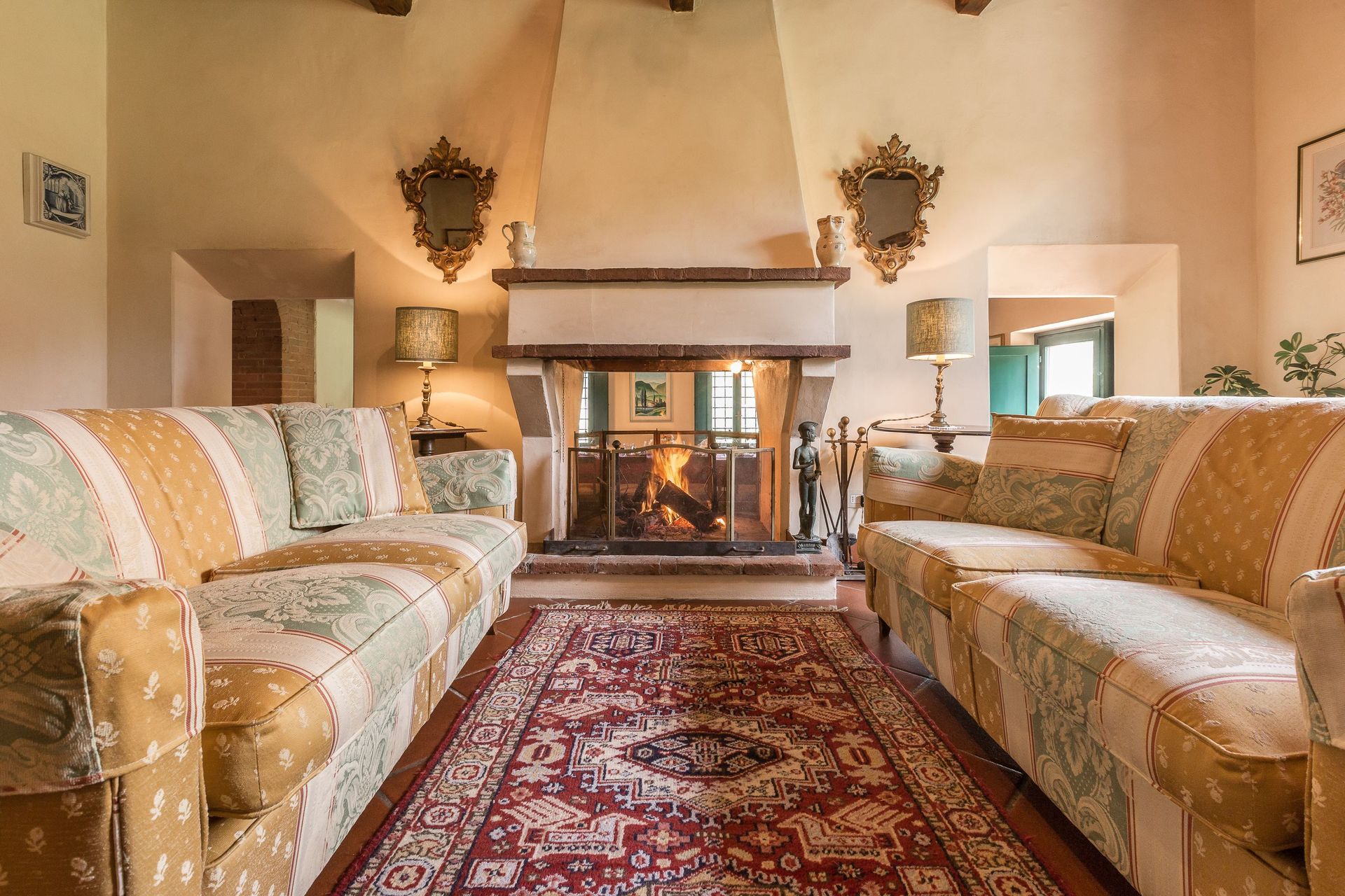 Wohnzimmer 1: Schreibtisch, Kamin, Doppel-Schlafsofa, WiFi Internet, Klimaanlage, Ausgang auf den Garten.