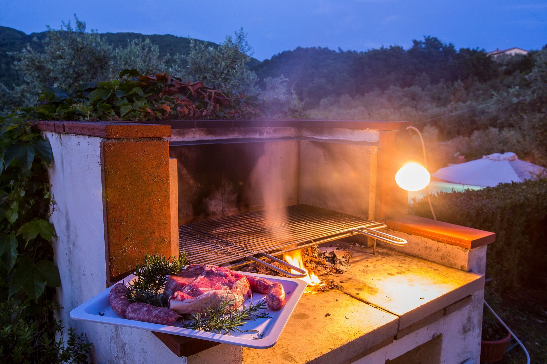 Garten: Schwimmbad (privat, Breite: 6m, Länge: 12m, Tiefe: 1.35m, Außen), WiFi Internet, Grill, Außenbereich für das Essen im Freien, Esstisch (Personen: 20), Gartenmöbel, Sonnenliege, umzäuntes Grundstück.