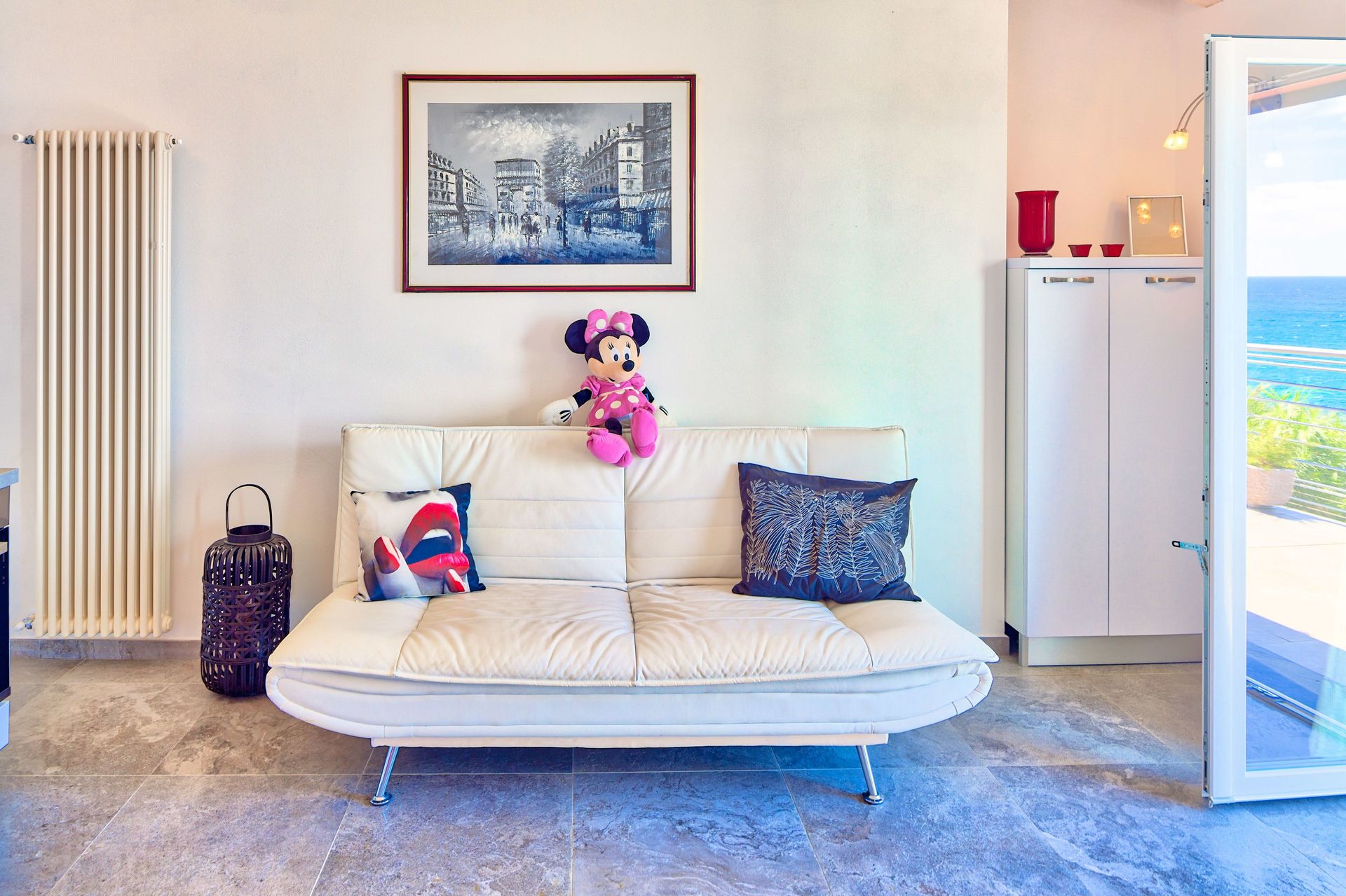 Die Wohnung im ersten Stock verfügt über eine große Panoramaterrasse mit herrlichem Meerblick.