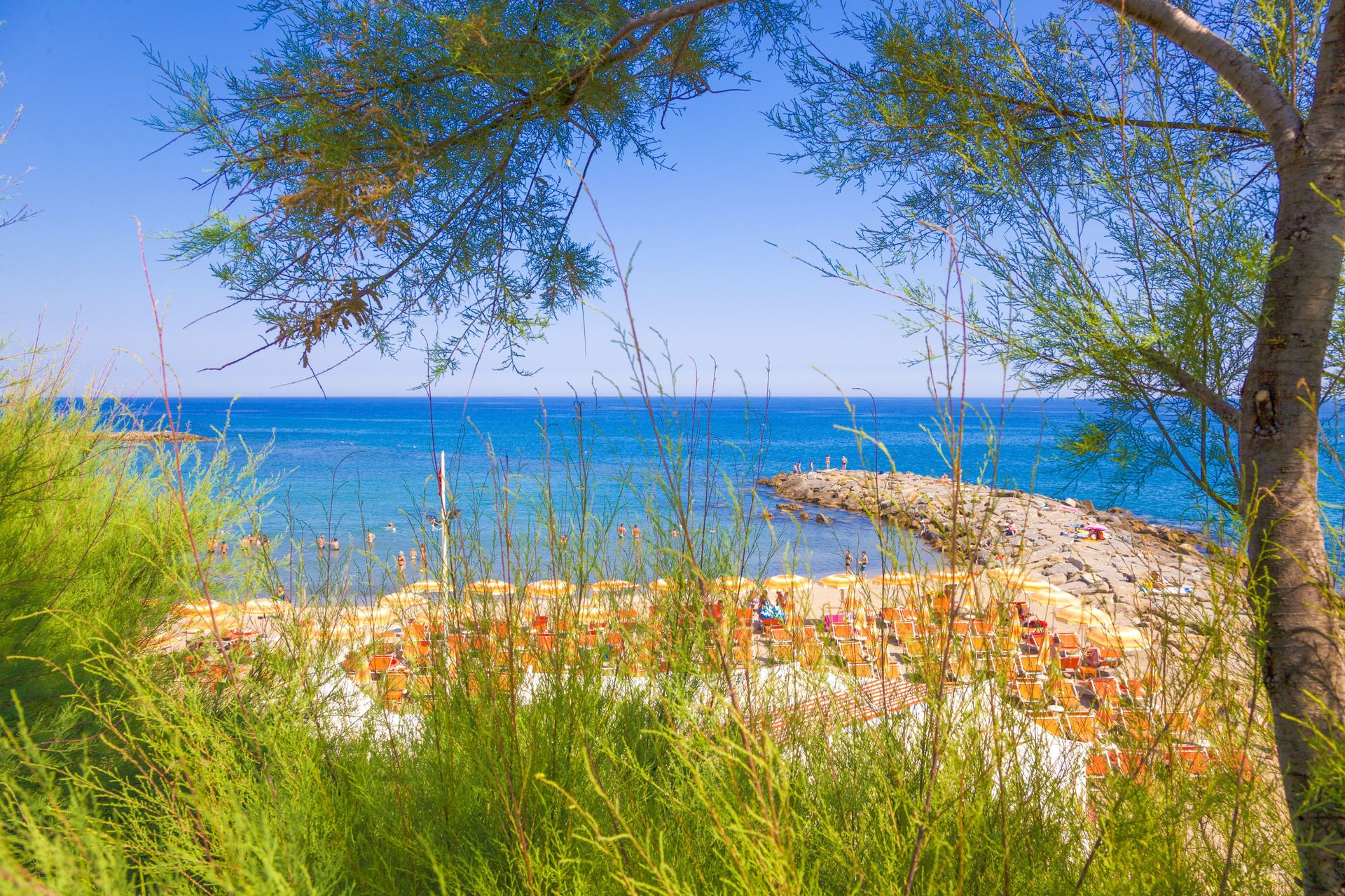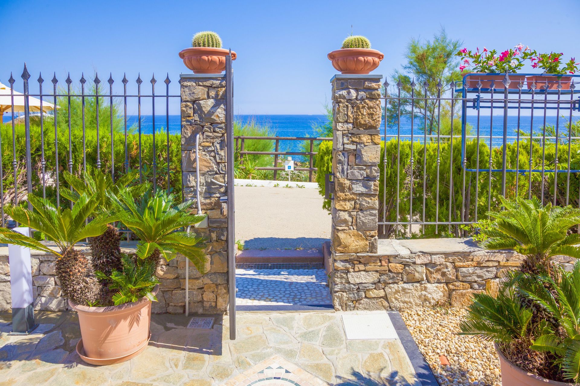 Unterhalb des Hauses finden Sie einen Privatstrand (Strandeinrichtung, mit Sand - wo Sie für die Nutzung von Sonnenschirm und Liegen bezahlen müssen. Eine frühzeitige Reservierung des Strandes wird empfohlen!), und daneben gibt es auch einen kostenlosen Strand ( öffentliche Strände: einer mit Sand, einer mit Felsen).