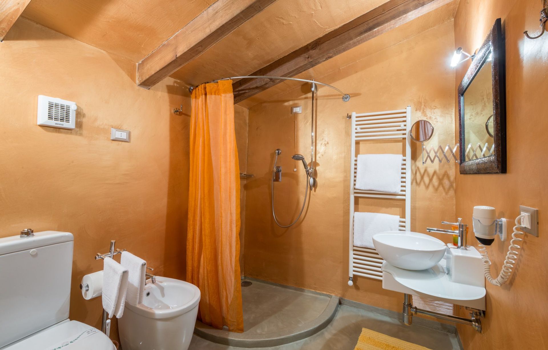 Schlafzimmer mit Bad 2: Doppelbett, WiFi Internet, Klimaanlage, Waschbecken, Bidet, Dusche, Fön.