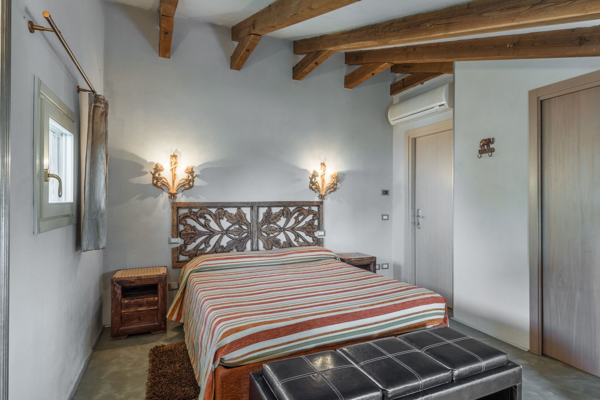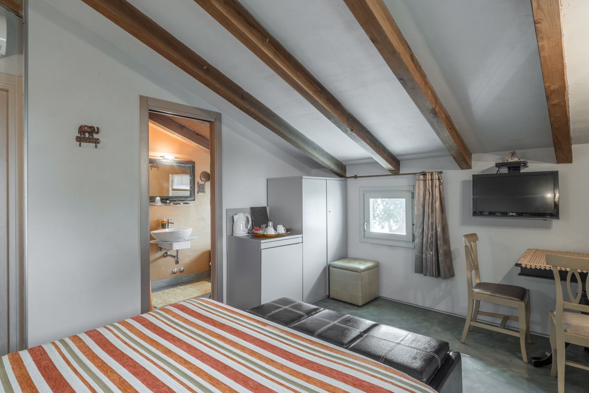 Schlafzimmer mit Bad 1: Doppelbett, WiFi Internet, Klimaanlage, Waschbecken, WC, Bidet, Dusche, Fön.