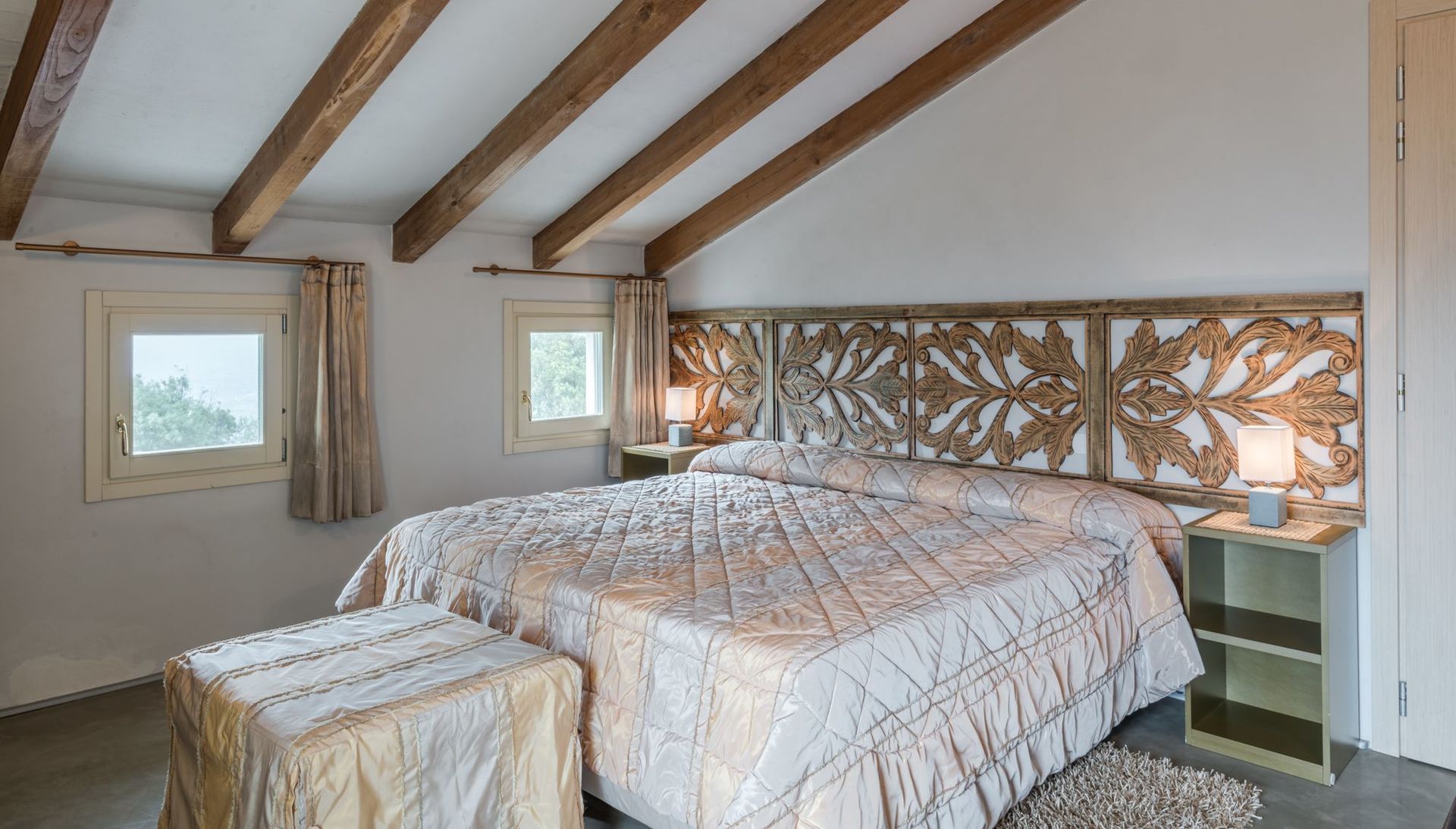 Schlafzimmer mit Bad 2: Doppelbett, WiFi Internet, Klimaanlage, Waschbecken, WC, Bidet, Dusche, Fön.