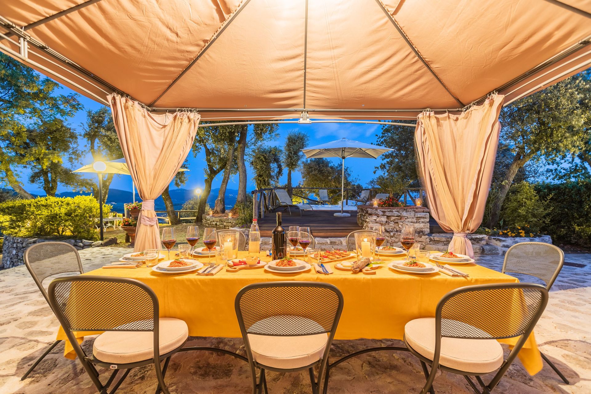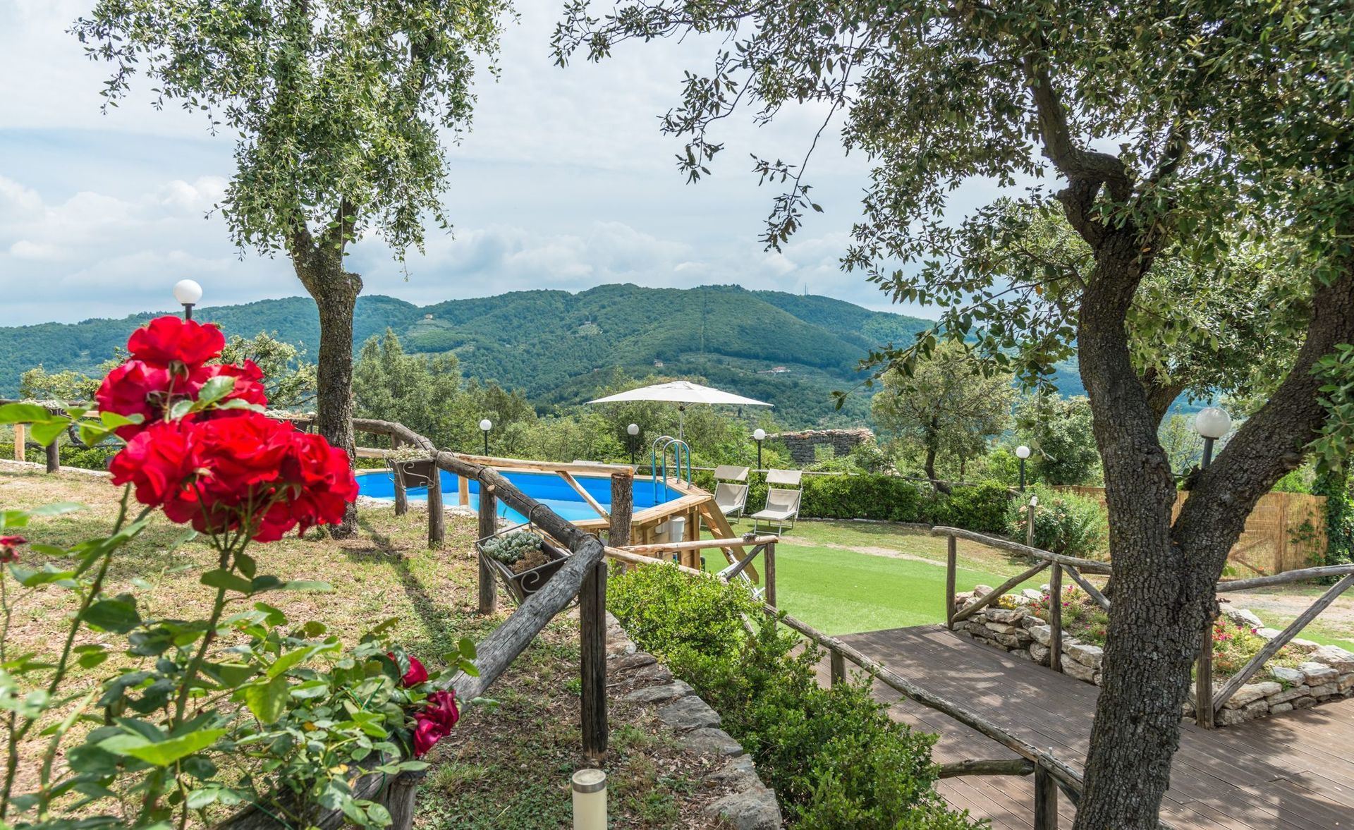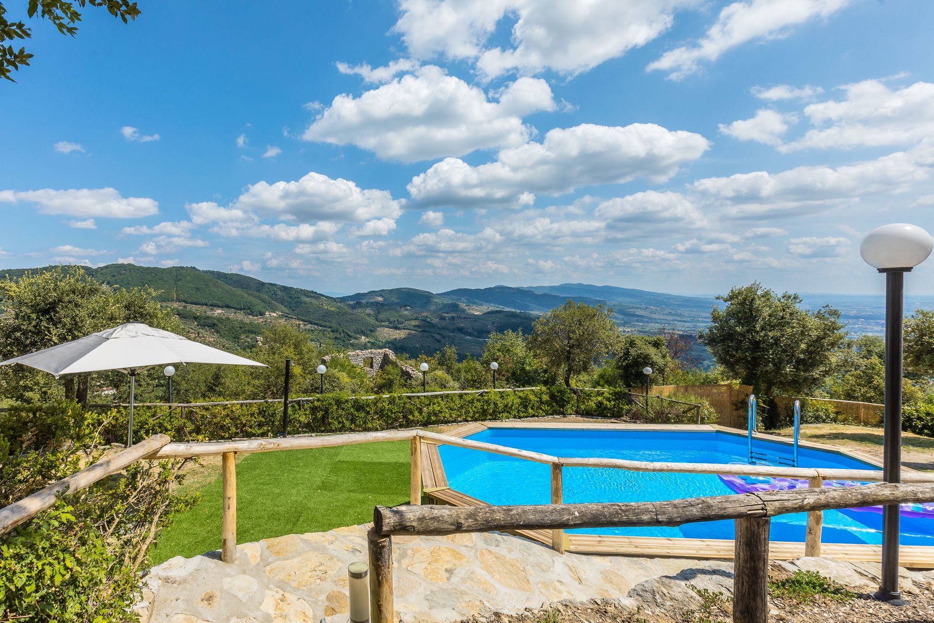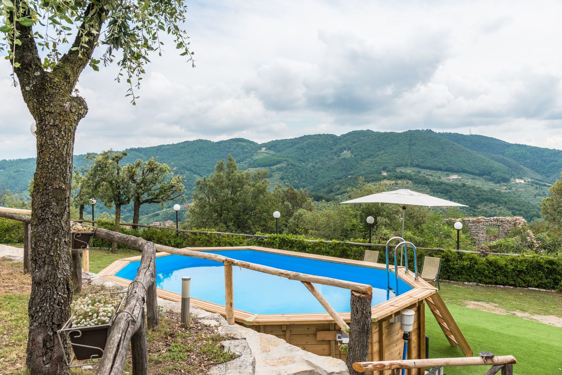 Garten: Schwimmbad (Breite: 3.9m, Länge: 6m, Tiefe: 1.1m, Außen, beheizt), Heißwasser-Whirlpool im Freien, WiFi Internet, Grill, Außenbereich für das Essen im Freien, Esstisch, Pavillon, Gartenmöbel, Terrassenmöbel, Sonnenliege, eingezäunt, umzäuntes Grundstück.
