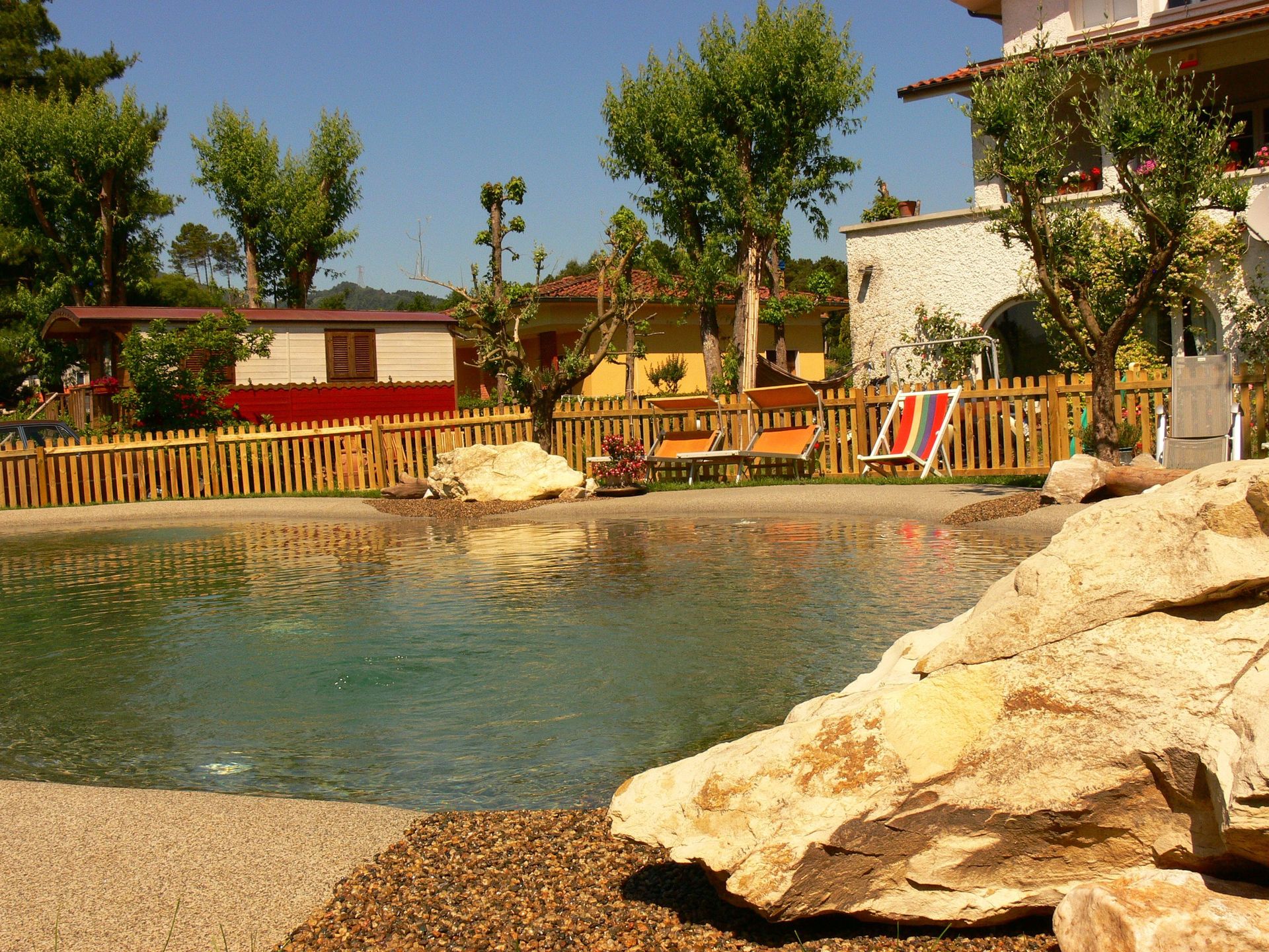 Garten: Schwimmbad (privat, Breite: 7m, Länge: 11m, Tiefe: 1.3m, Außen), Grill, Gartenmöbel, Sonnenliege, umzäuntes Grundstück, Kinderspielplatz.