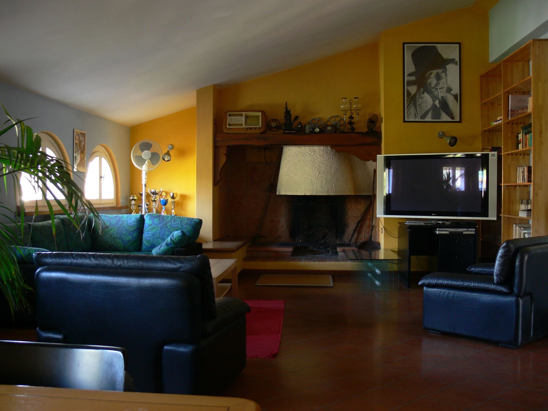 Wohnzimmer: Sofa, Sessel, Kamin, Doppel-Schlafsofa, TV, Fliegengitter, Video / DVD.
