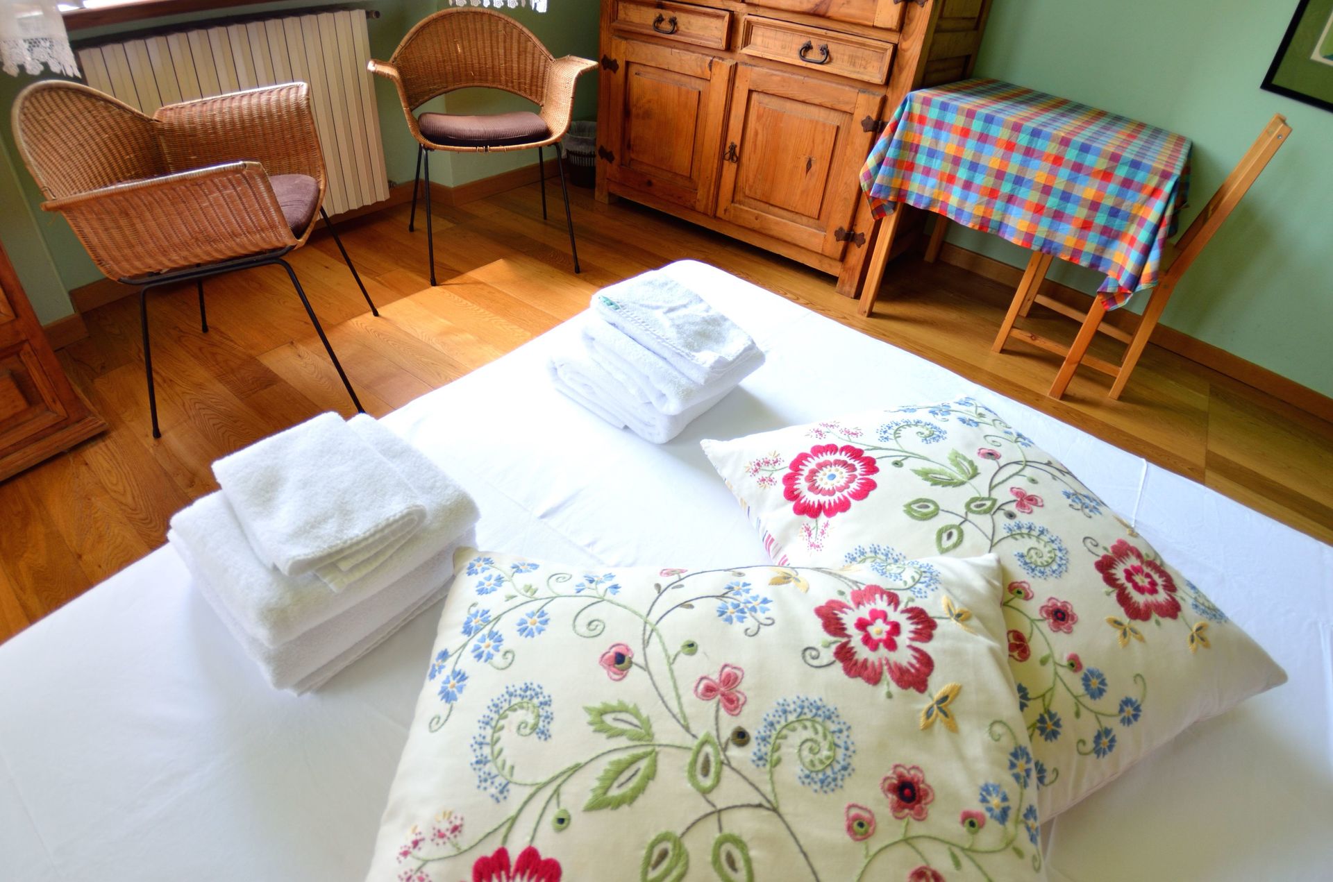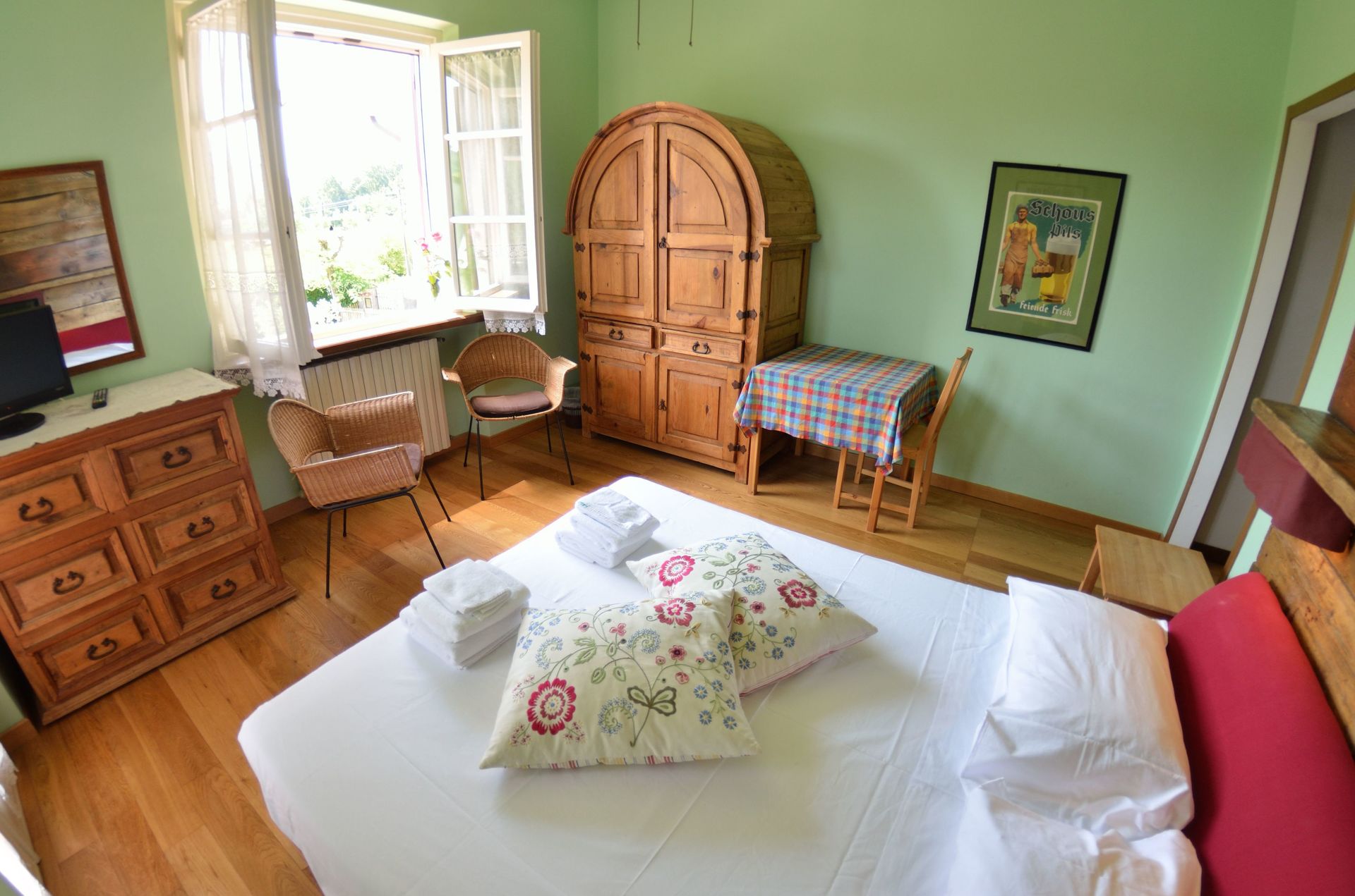 Schlafzimmer 1: Doppelbett (Breite: 1.4m, Länge: 1.9m), Doppel-Schlafsofa (Breite: 1.4m).