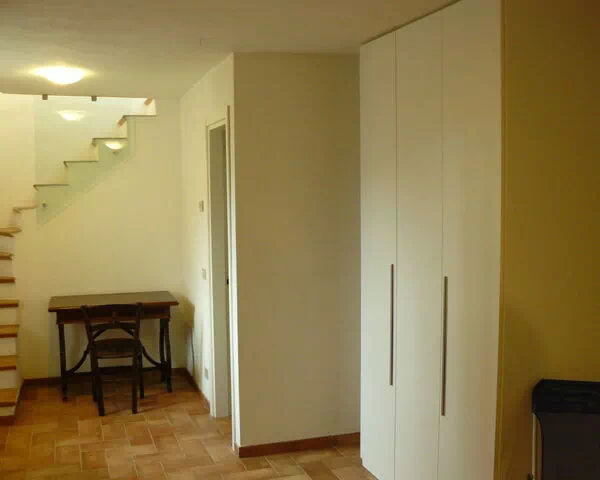 Im Erdgeschoss befindet sich ein Schlafbereich mit einem Doppelsofa von 140 cm Breite, der zur Terrasse führt, sowie ein Bad mit Dusche, Bidet und WC.