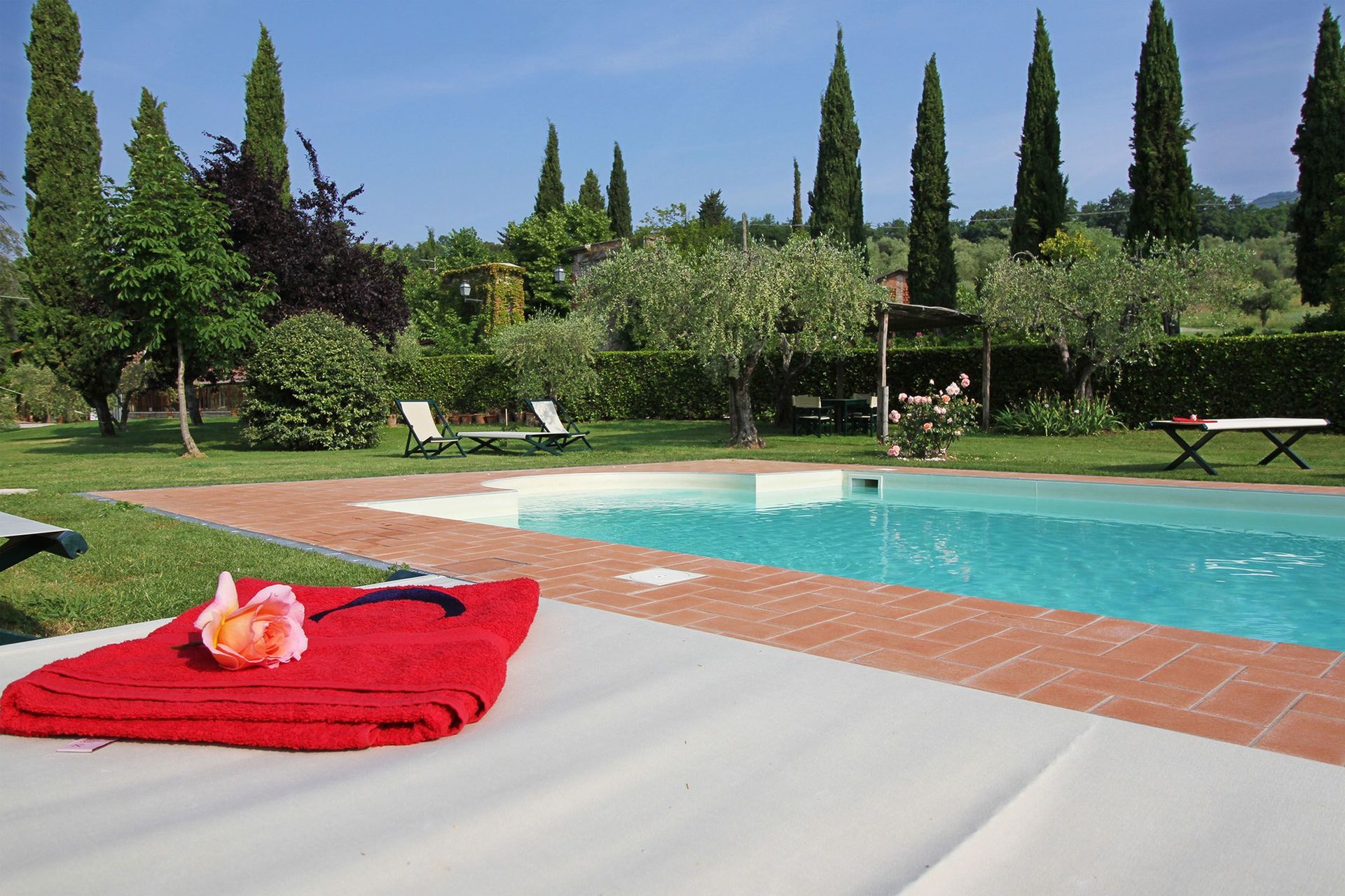 Viele Gäste besuchen im Urlaub gerne die Städte und Ortschaften in der Nähe, also haben wir für Sie eine Liste von beliebten Orten zusammengestellt, die alle nur eine kurze Entfernung (Luftlinie) von Ihrer Ferienunterkunft haben: Lucca 15 km, Viareggio 46 km, Pisa 47 km, Forte Dei Marmi 53 km und Florenz 75 km. Die Autobahn ist nur 8 km von der Villa entfernt und eine Zugstation nur 5 km.