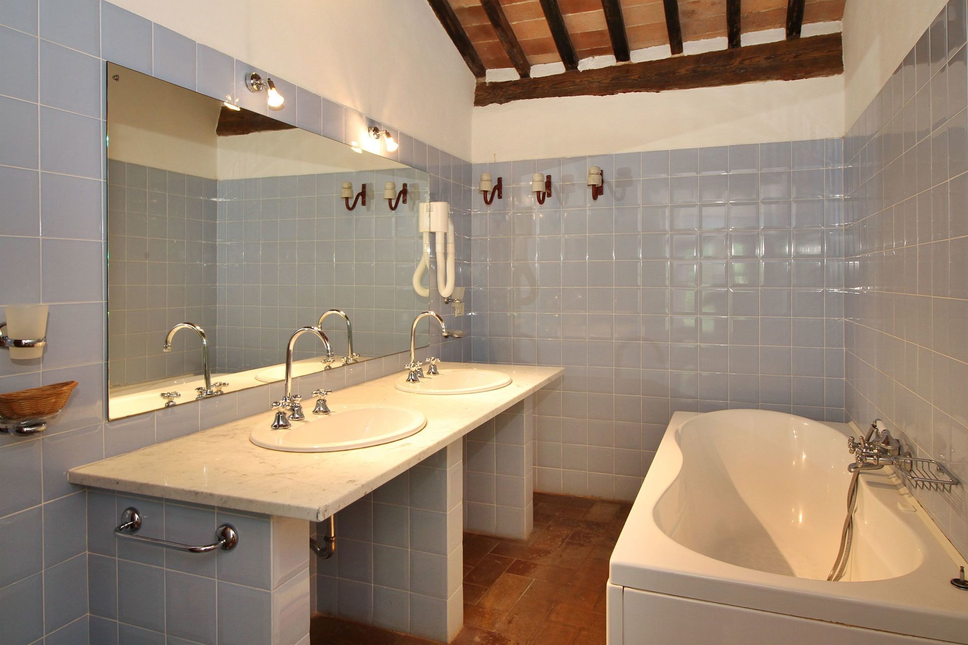 Schlafzimmer mit Bad 1: zwei Einzelbetten, WiFi Internet, Klimaanlage, Doppelwaschbecken, WC, Bidet, Badewanne, Fön.