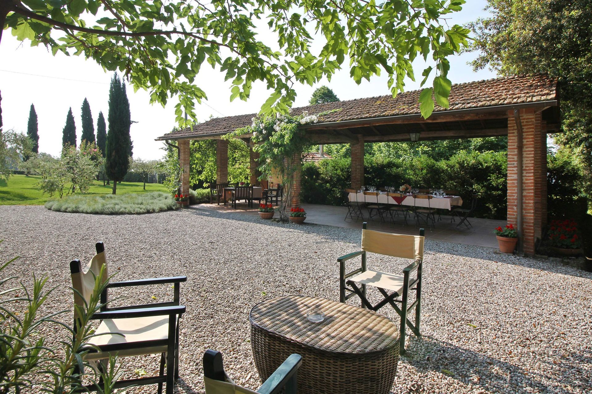 Diese Villa gehört zum Gutsbetrieb Mansi Bernardini. Die Küche ist sehr modern ausgestattet und im gegenüberliegenden Garten gibt es eine Terrasse mit Essplatz und Grill.