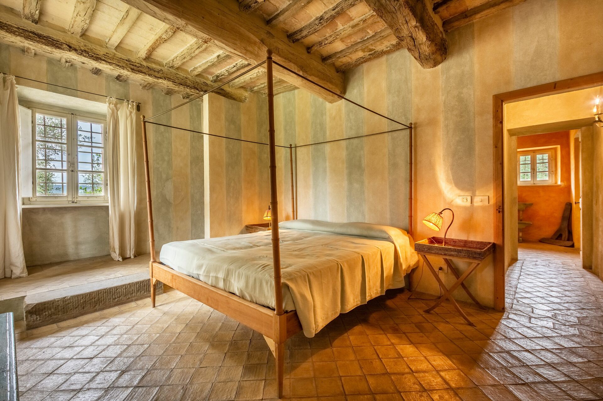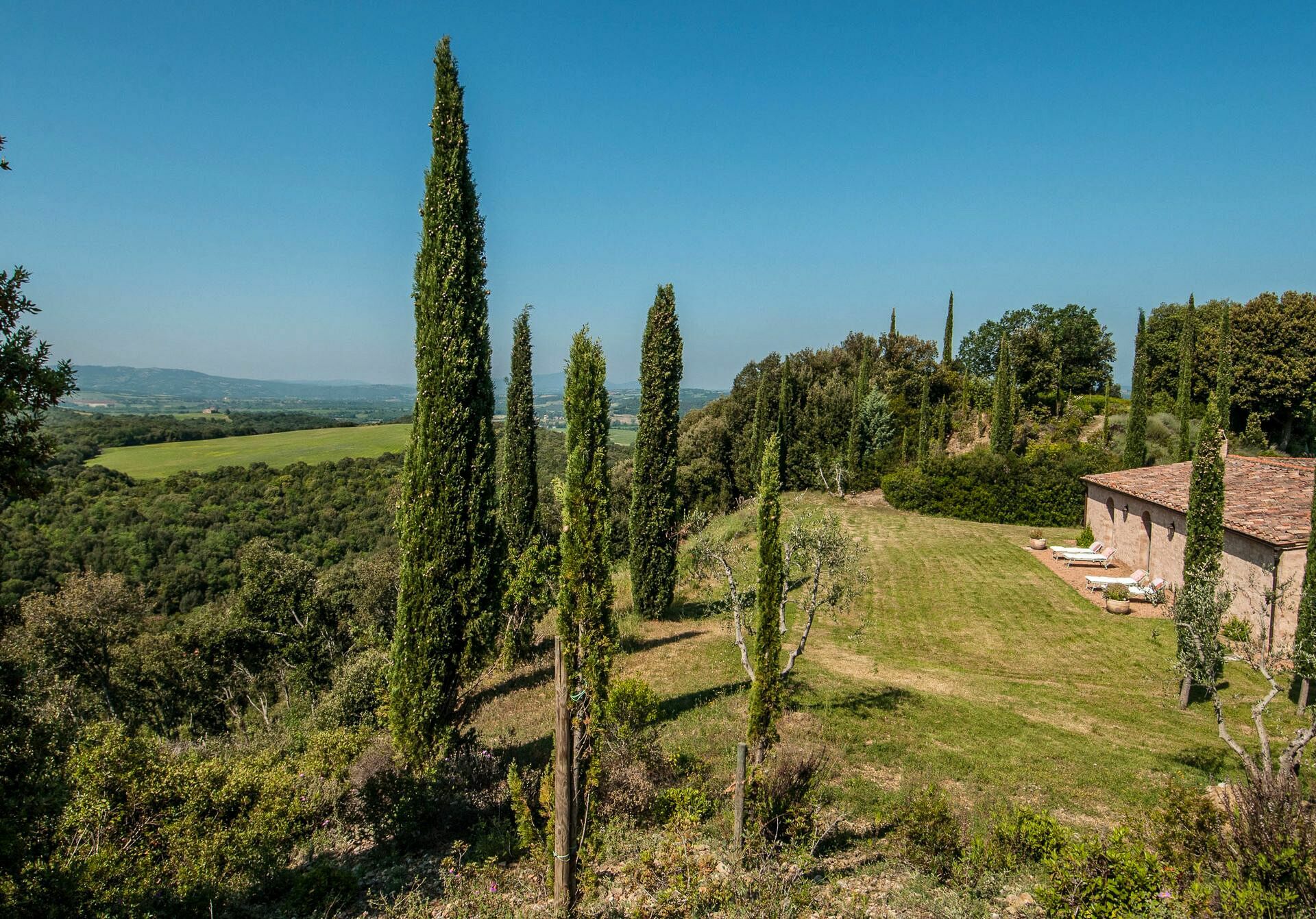 Das Anwesen besteht sowohl aus einem großen toskanischen Bauernhaus aus Stein als auch aus einem kleinen Gästehaus.