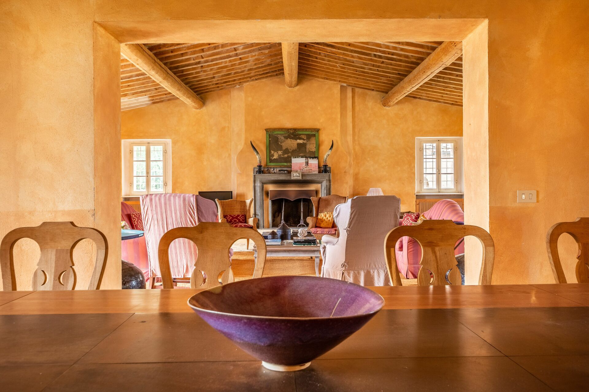 Esszimmer: Esstisch (Personen: 16), WiFi Internet, Kamin, Ausgang auf den Garten, Ausgang auf den Patio.