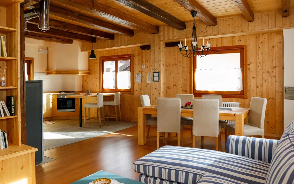 3-Zimmer-Haus 110 m2 auf 2 Stockwerken. Gemütlich und mit viel Holz eingerichtet: Wohn-/Esszimmer mit Schwedenofen, Esstisch und Sat-TV. Offene Küche (Backofen, Geschirrspüler, Gasherd, 4 Flammen, elektrische Kaffeemaschine) mit kleiner Bar. Dusche/WC. Dachgeschoss: 1 abgeschrägtes Zimmer mit 1 Bett und 1 Doppelbett. 1 abgeschrägtes Zimmer mit 1 Bett. Dusche/WC. G-Heizung. Parkettboden. Zur Verfügung: Babybett. Internet (Wireless LAN, gratis). Bitte beachten: Nichtraucher-Haus. Es werden keine zusätzlichen Gebühren vor Ort fällig. Bettwäsche, Handtücher, Endreinigung und alle Energiekosten sind inkludiert. IT030067A1IWKVOAFQ