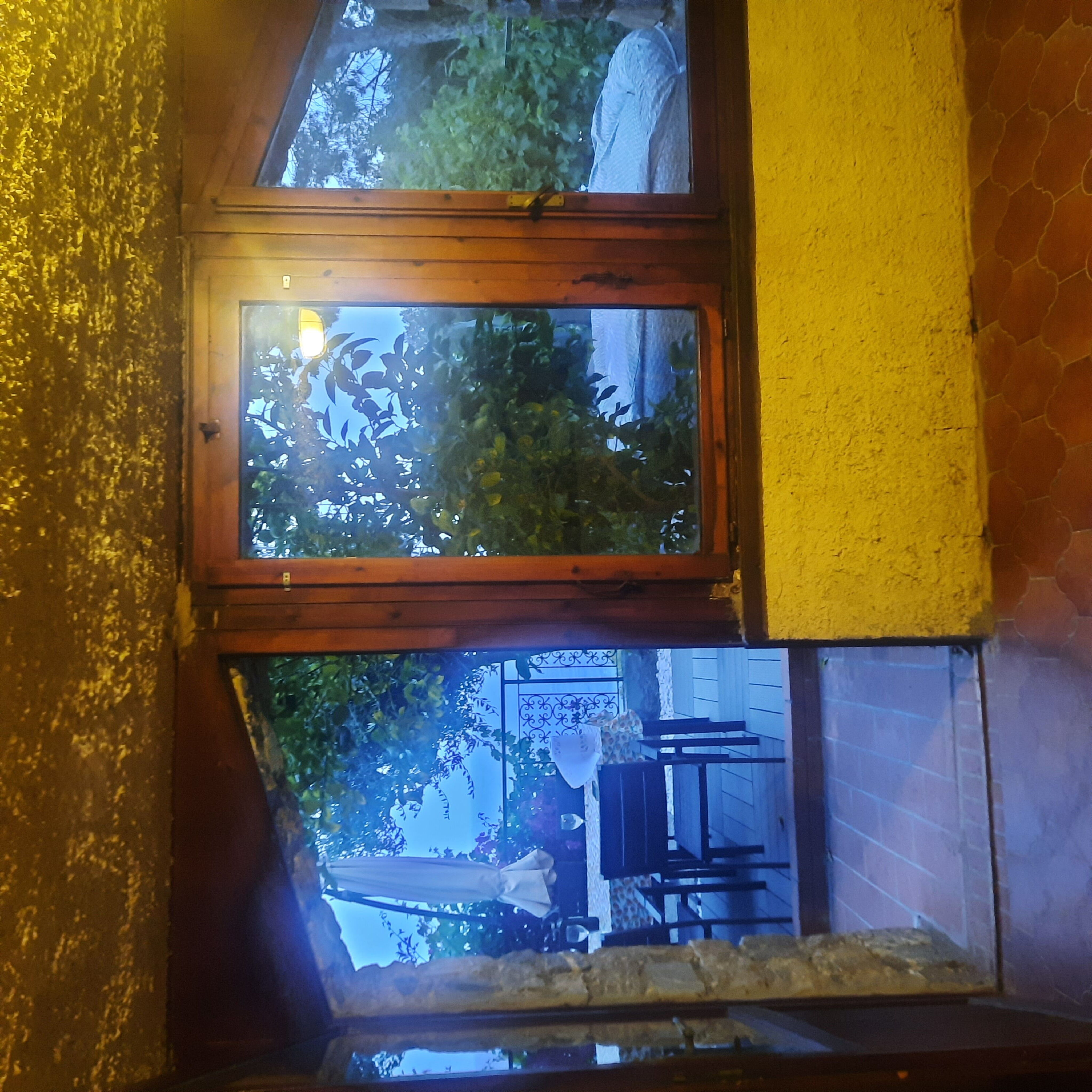 Der Außenbereich erstreckt sich über einen sanft terrassierten Garten von 200 Quadratmetern, der vollständig eingezäunt ist. Der Garten ist mit Rasen und Bäumen bepflanzt und bietet natürlichen Schatten sowie eine ruhige Atmosphäre. Ein runder oberirdischer Pool mit einem Durchmesser von 2 Metern und einer Tiefe von 60 bis 70 Zentimetern dient als erfrischender Mittelpunkt des Außenbereichs in den wärmeren Monaten; der Pool ist vom 1. April bis 1. November verfügbar. Der Zugang zum Anwesen erfolgt über eine 100 Meter lange schmale Zufahrtsstraße zum Grundstück, wobei eine Treppenpfad den Eingang mit dem Haus verbindet.