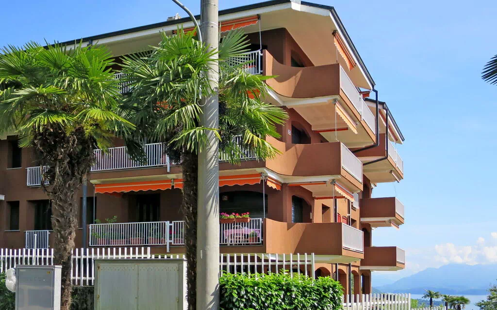 Mehrfamilienhaus "Le Terrazze", auf 4 Stockwerken. 10 Wohnungen im Ferienhaus. Oberhalb von Arona, im Weiler Dagnente, 4 km vom Zentrum von Arona, 2.5 km vom Zentrum von Meina, 16 km vom Zentrum von Stresa, am Hang, 2.5 km vom See. Zur Mitbenutzung: Grundstück 3'000 m2, terrassierter Garten mit Bäumen. Im Hause: Fahrstuhl. Treppenweg bis zum Haus. Gemeinschaftsgarage (extra), öffentliche Parkplätze auf der Strasse. Supermarkt 4.3 km, Restaurant 1 km, Bushaltestelle 2 km, Kieselstrand "Meina" 2.5 km, Hallenbad 5.8 km. Bitte beachten: Fahrzeug empfohlen.