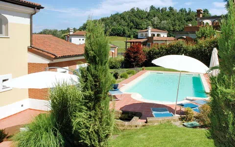Das Ferienhaus FLAVIA steht am Rande eines Golfplatzes (aktuell geschlossen, Stand Juli 2019), 8 km außerhalb von Asti. Einkaufsmöglichkeiten in Settime, 2 km. Auf dem benachbarten Grundstück ein Dutzend Rohbauten (zur Zeit keine Bautätigkeit). Zum Haus gehört ein ca. 1000 m² großes, gepflegtes, umzäuntes Rasengrundstück. Hinter dem Haus, in sonniger Lage der Pool (11 x 5 m, 1,50 m tief, 11.04.20-17.10.20) mit Massagedüsen, Terrasse, Sonnenschirm und Sonnenliegen. Am Haus eine weitere, überdachte Terrasse (Mobiliar). Grill. Ein Gärtner kommt 1x wöchentlich zur Grundstückspflege. Parkplätze am Haus. Gute Einrichtung. Parkettböden. Gute Ausstattung: Sat-TV, DVD. Stereoanlage. Internetzugang (WLAN, inklusive). Waschmaschine. Trockner. Alarmanlage. Klimaanlage. Gas-Fußbodenheizung. Hinweis: Rauchen ist im Haus nicht gestattet.