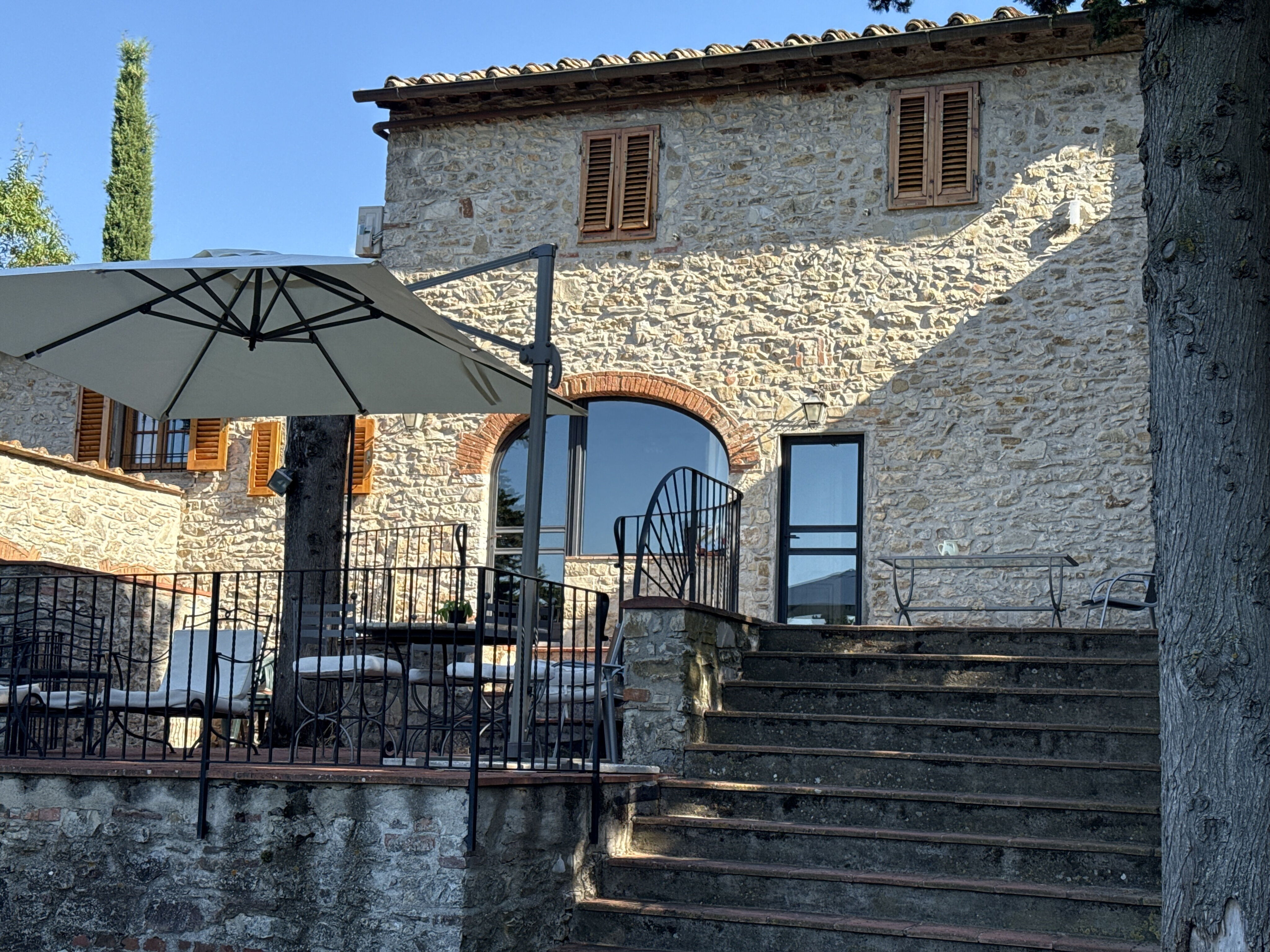 Une propriété située au cœur des vignes de chianti et des oliviers, dotée d’une piscine avec une superbe vue et des hôtes adorables et très discrets. Le vin produit est excellent et labellisé bio. La maison est fonctionnelle et les terrasses extérieures très agréables. La situation géographique est idéale, à 3/4 d’heure de Florence ou de Sienne.
