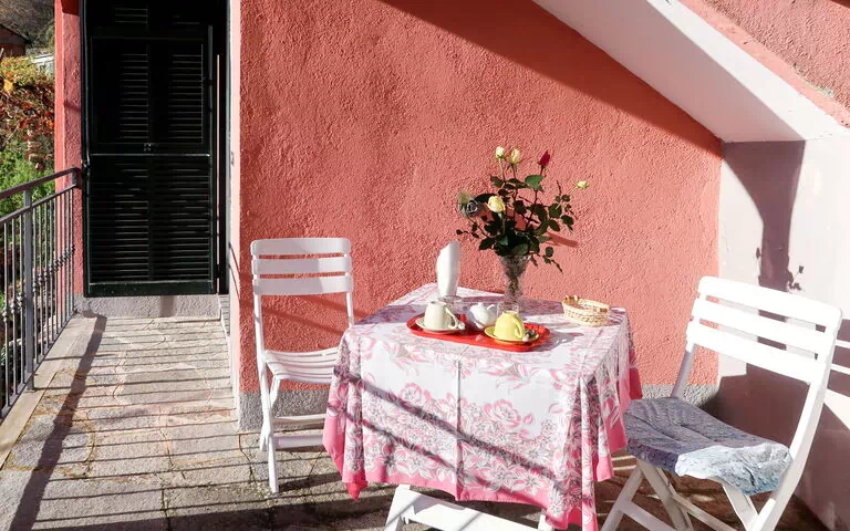 Das Ferienhaus CASUN DE VANÈ steht in Hanglage am Ortsrand von Conio, mit Blick über Dächer und bewaldete Hänge. Ortsmitte ca. 50 m. Nächste Einkaufsmöglichkeit in Borgomaro, 13 km. Supermarkt in Pontedassio, 23 km. Zu den Stränden von Imperia 29 km. Keine direkte Zufahrt zum Haus möglich. Öffentliche Parkplätze in ca. 100 m Entfernung, von hier über Fußweg (teils Treppen) zum Haus. Zum Haus gehört eine kleine überdachte Terrasse im Obergeschoss sowie eine Terrasse mit Mobiliar, 2 Sonnenliegen, Sonnenschirm und transportablem Grill auf Erdgeschoss-Ebene. Die andere Haushälfte steht leer. Freundliche, zweckmäßige Einrichtung. Fliesenboden. TV. Stereoanlage. Bügeleisen/-brett. 2 Elektroradiatoren. Im Schlafzimmer Elektro­heizung.