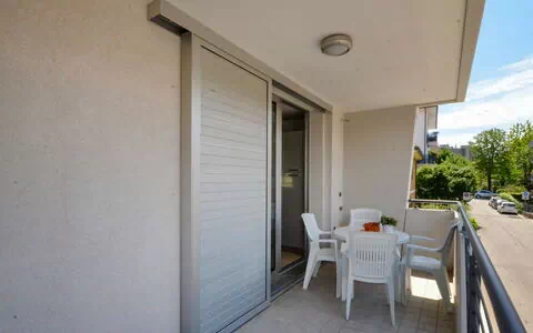 Modernes Appartementhaus "Ore Felici", auf 5 Stockwerken. 9 Wohnungen in der Residenz. Im Ortsteil Ligano-Sabbiadoro, 1.1 km vom Zentrum von Lignano-Sabbiadoro, 13 km vom Zentrum von Bibione, 95 km vom Zentrum von Trieste, 700 m vom Meer. In der Anlage: Fahrstuhl, Fahrradverleih. Öffentliche Parkplätze auf der Strasse. Supermarkt 150 m, Restaurant 200 m, Bushaltestelle 250 m, Bahnstation "Latisana (Milano-Venezia-Triest)" 20 km, Sandstrand 700 m. Golfplatz (18 Loch) 6.1 km. Strandservice: Von ca. Anfang Mai bis ca. Mitte September sind jeweils 1 Sonnenliege, 1 Liegestuhl und 1 Sonnenschirm pro Wohnung im Mietpreis eingeschlossen.