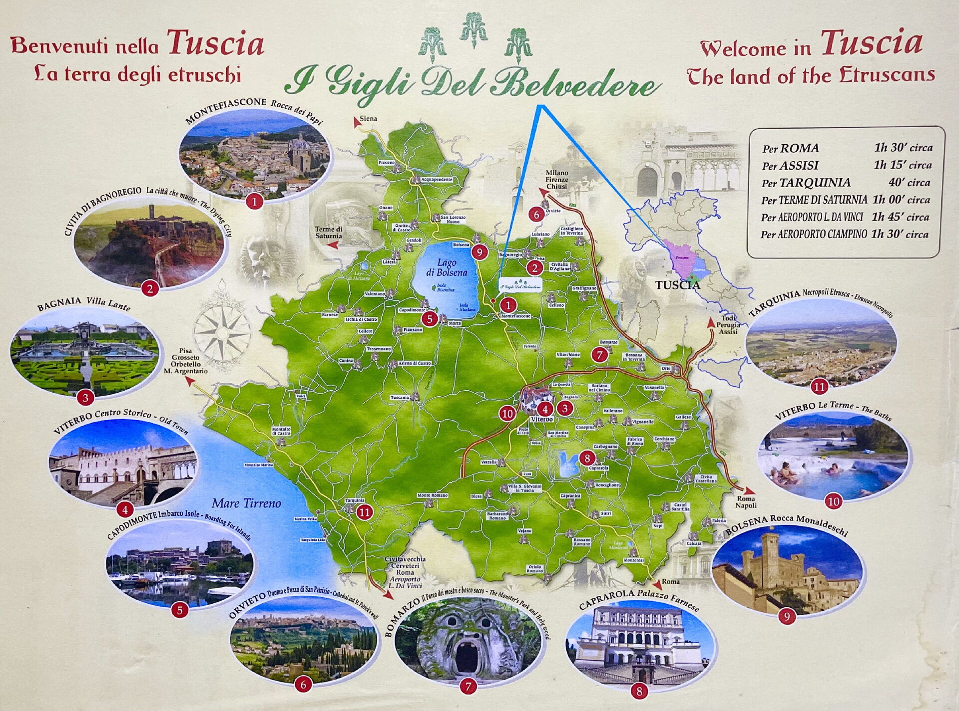Weitere Orte, die besucht werden können: Civita di Bagnoregio 13km, der Bolsena See 5km, Orvieto 25km, Tarquinia 40km.