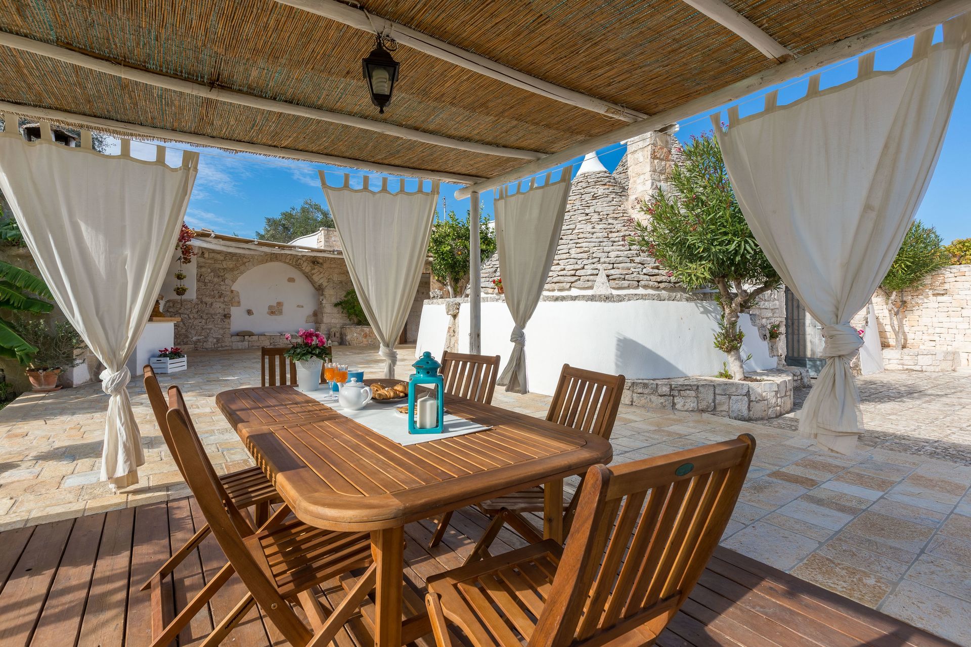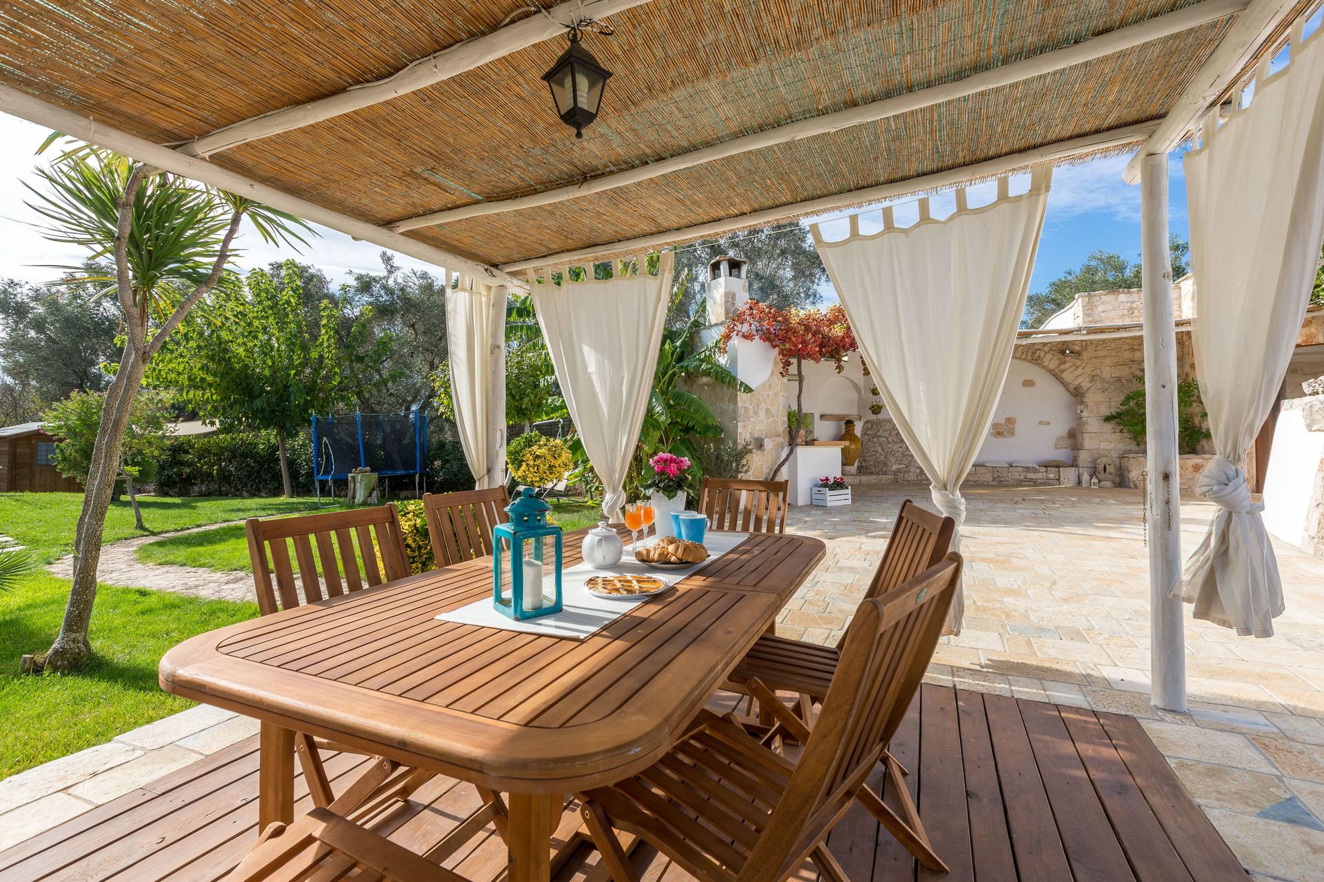 Bei Ankunft in Ihrem Ferienheim Trullo Suenn Con Piscina werden Sie eine hübsche, saubere und gut gepflegte Unterkunft finden, erstklassig für einen entspannenden Apulien-Urlaub. Zum Zeitvertreib gibt es hier einen privater Pool wo Sie sich nach Ihrem beschäftigten Tag, den Sie mit Sightseeing verbracht haben, erholen können, während Sie ein erfrischendes, kühles Getränk zu sich nehmen. Zu Ihrem Vergnügen gibt es auf dem Gelände einen Spielplatz and einen Grill. Wenn Sie gerne für Familie und Freunde kochen, werden Sie sich über die gut ausgestattete Küche freuen mit Kaffeemaschine, Toaster und Kühlschrank, sowie ausreichend Geschirr und Besteck für bis zu sechs Personen. Wenn Sie lieber 'al Fresco' speisen, dann können Sie das auf der komplett eingerichteten Veranda tun, wo Sie gleichzeitig das schöne Wetter beim Essen genießen können.