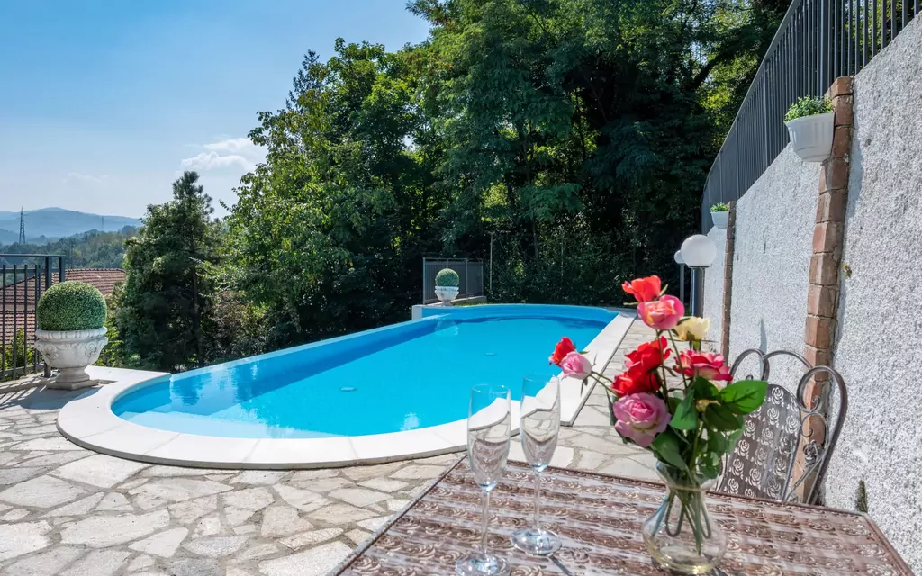 Villa "Le Rose". 5.7 km vom Zentrum von Gavi, am Ortsrand, 4.3 km vom Zentrum von Serravalle Scrivia, 35 km vom Zentrum von Alessandria. Zur Alleinbenutzung: Grundstück 10'000 m2, gepflegter terrassierter Garten mit Pflanzen und Bäumen, Obstgarten, Schwimmbad (12 x 4 m, 120 cm tief, saisonale Verfügbarkeit: 15.Mai. - 30.Sep.). Sitzplatz, Gartenmöbel. Im Hause: Billard. 80 m lange steile Zufahrt. Parkplatz (für 3 Autos) beim Haus. Einkaufsgeschäft 4.3 km, Supermarkt 4.3 km. Golfplatz 3.4 km. Nahe gelegene Sehenswürdigkeiten: Parco Acquatico Bolle Blu 10 km, Serravalle Designer Outlet 4.7 km. Der Besitzer akzeptiert keine Jugendgruppen. Die Nachbarschaft ist sehr lärmempfindlich. Ruhe und gutes Benehmen wird erwartet.