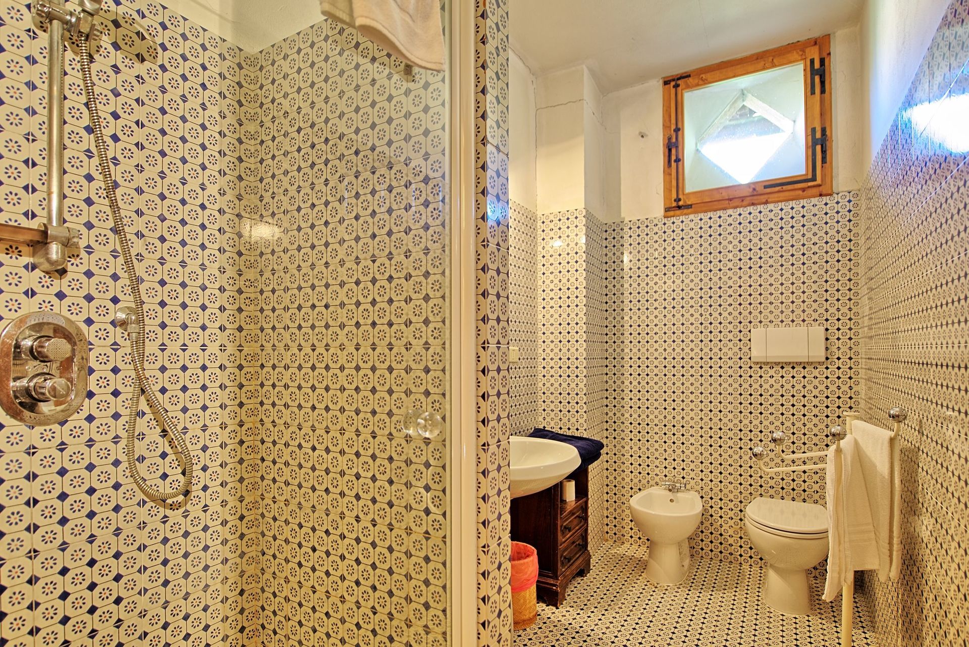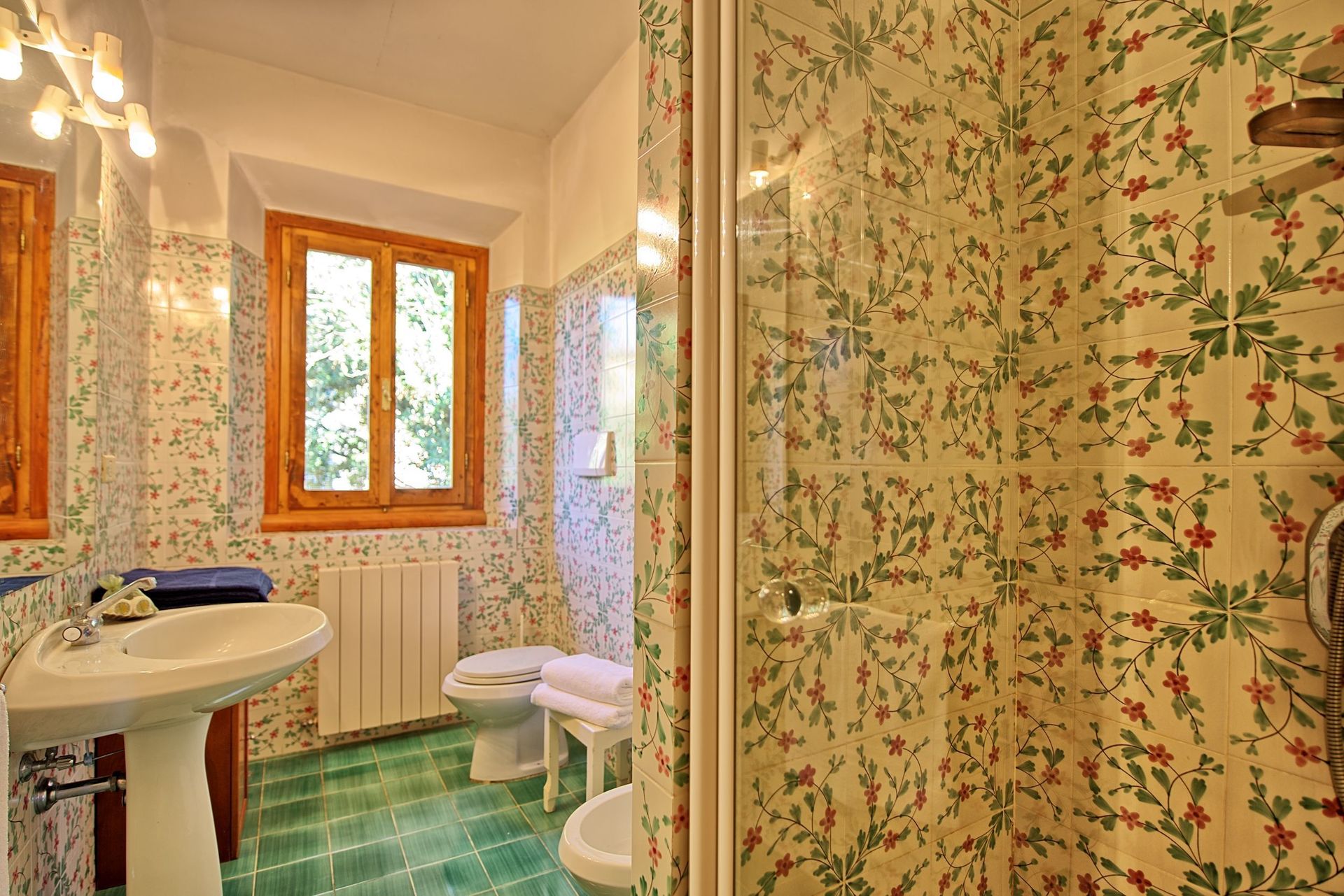 1.Stock: (nur von draußen zugänglich ):großes Wohnzimmer (Satellitenfernsehen, Videorecorder) mit Doppelschlafcouch, Esszimmer mit Kochecke (Ofen, kleine Mikrowelle, Gefrierfach, Spülmaschine, Toaster), 2 Doppelzimmer, 2 Bäder mit Dusche.