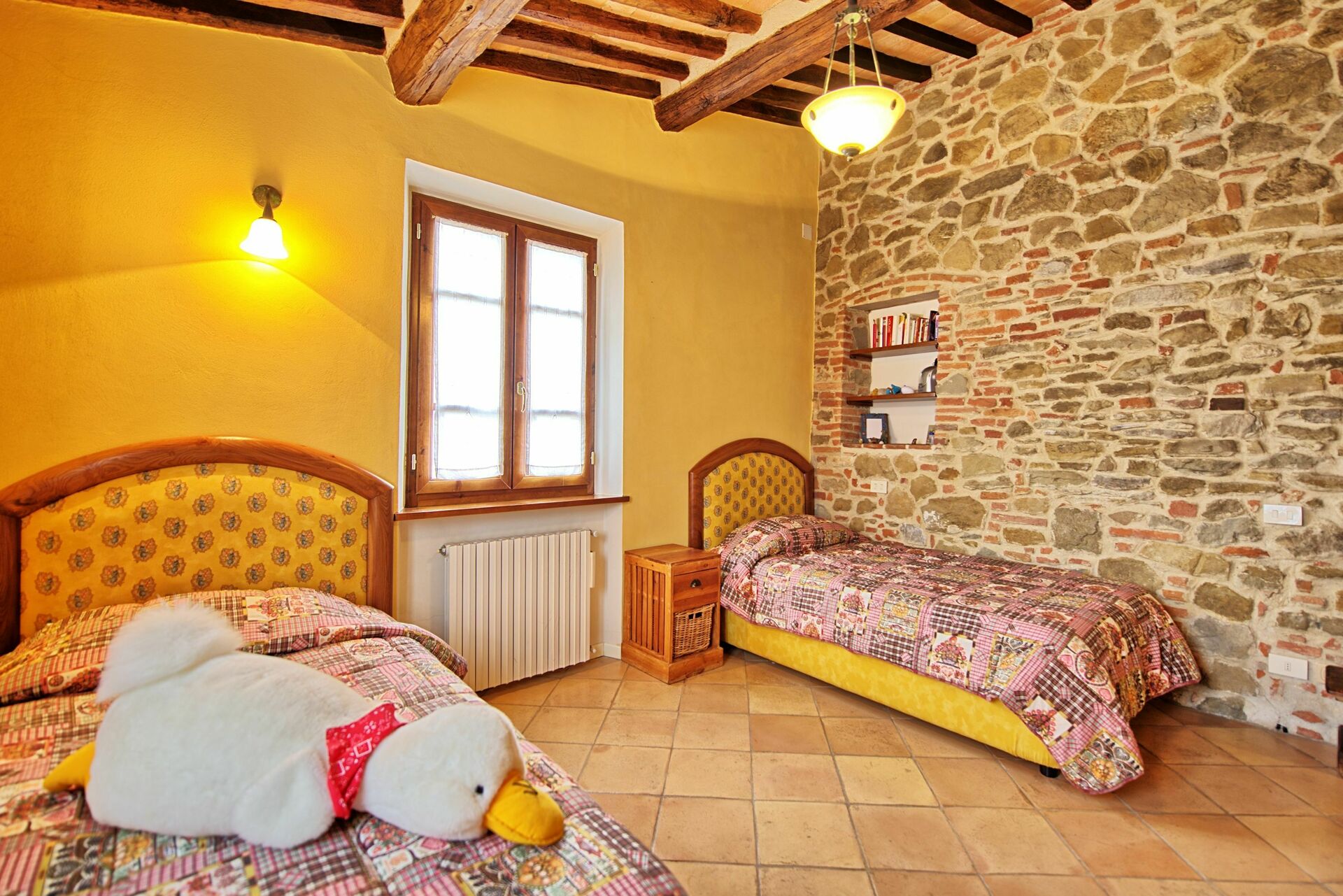 1. Stock Doppelzimmer mit Ehebett und privatem Bad mit Dusche, Schlafzimmer mit französischem Ehebett (für 2 Kinder oder einen Erwachsenen), Bad mit Badewanne, Zweibettzimmer.