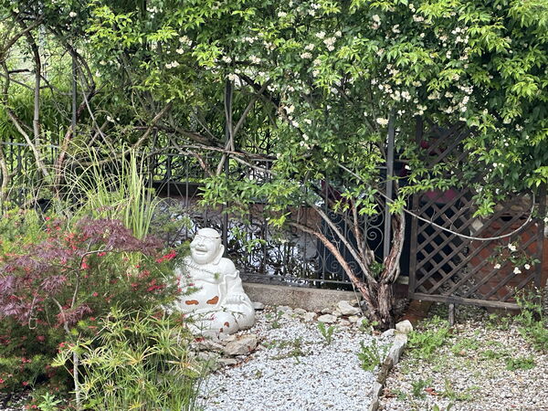 Das Haus erstreckt sich über zwei Etagen, und da es am Hang eines Hügels erbaut wurde, haben Sie von jeder Etage aus direkten Zugang zum Garten.