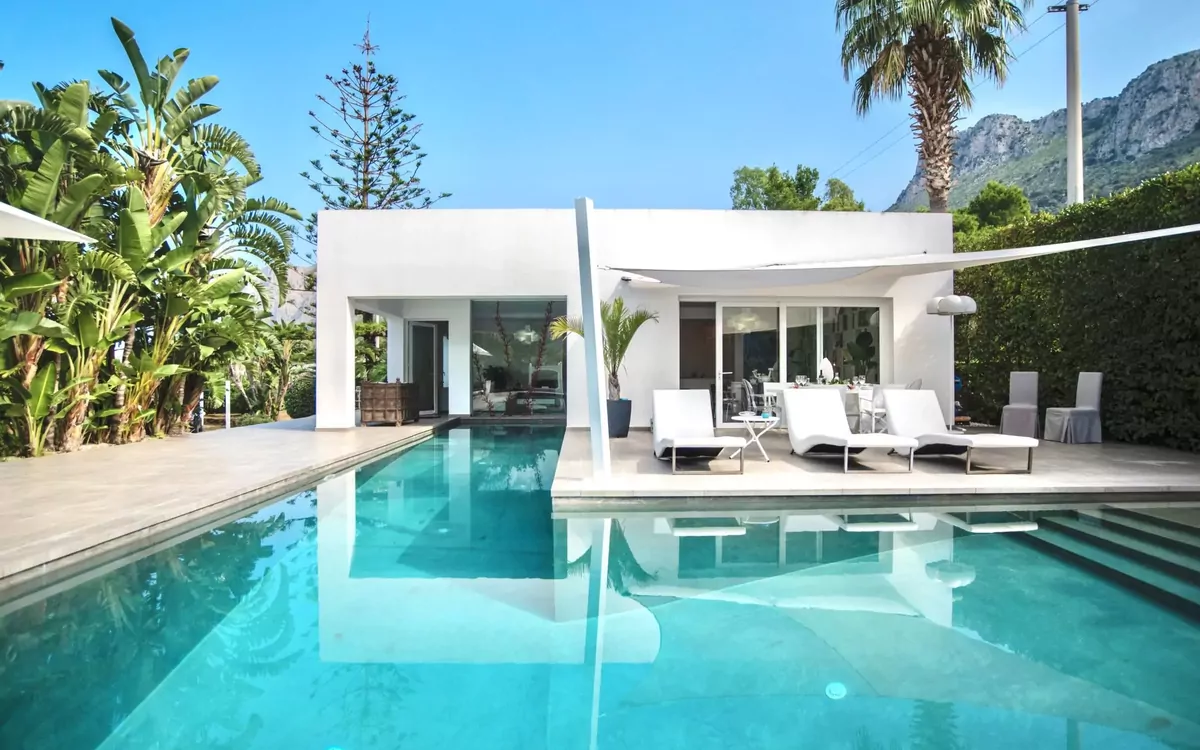 Die Terrasini Luxury Villa ist der perfekte Rückzugsort für Urlauber mit einem Gespür für Kunst, die in einer luxuriösen Umgebung mal so richtig die Seele baumeln lassen wollen. Ein wirklich vornehmes und bemerkenswertes Ferienhaus auf Sizilien. Ein ganz einzigartiges, modernistisches und architektonisches Wunder. Diese helle Unterkunft, die mit vielen faszinierenden Kunstwerken verziert und von einem grünen Garten eingerahmt ist und mit erstklassigen Einrichtungen prahlen kann, liegt in der Nähe der Küstenortschaft Terrasini, nicht weit von der atemberaubenden Hauptstadt der Insel, Palermo, entfernt. Wenn Sie nach Inspiration suchen, sich nach Ruhe und Frieden, Entspannung und Erholung sehnen, in Küstennähe wohnen möchten und Tagesausflüge zu den endlosen architektonischen Schönheiten und kulturellen Reichtümern von Palermo machen möchten, ist die Terrasini Luxury Villa genau das Richtige für Sie!
