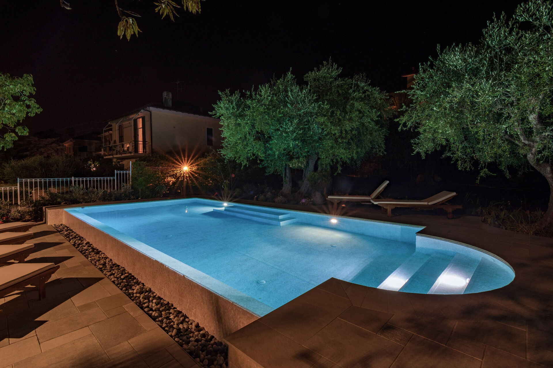 • a swimming pool measuring 10 x 5 metres, 135 centimetres deep. A Roman staircase allows entry to the pool, while, on the south side, the infinity waterfall guarantees clean water.